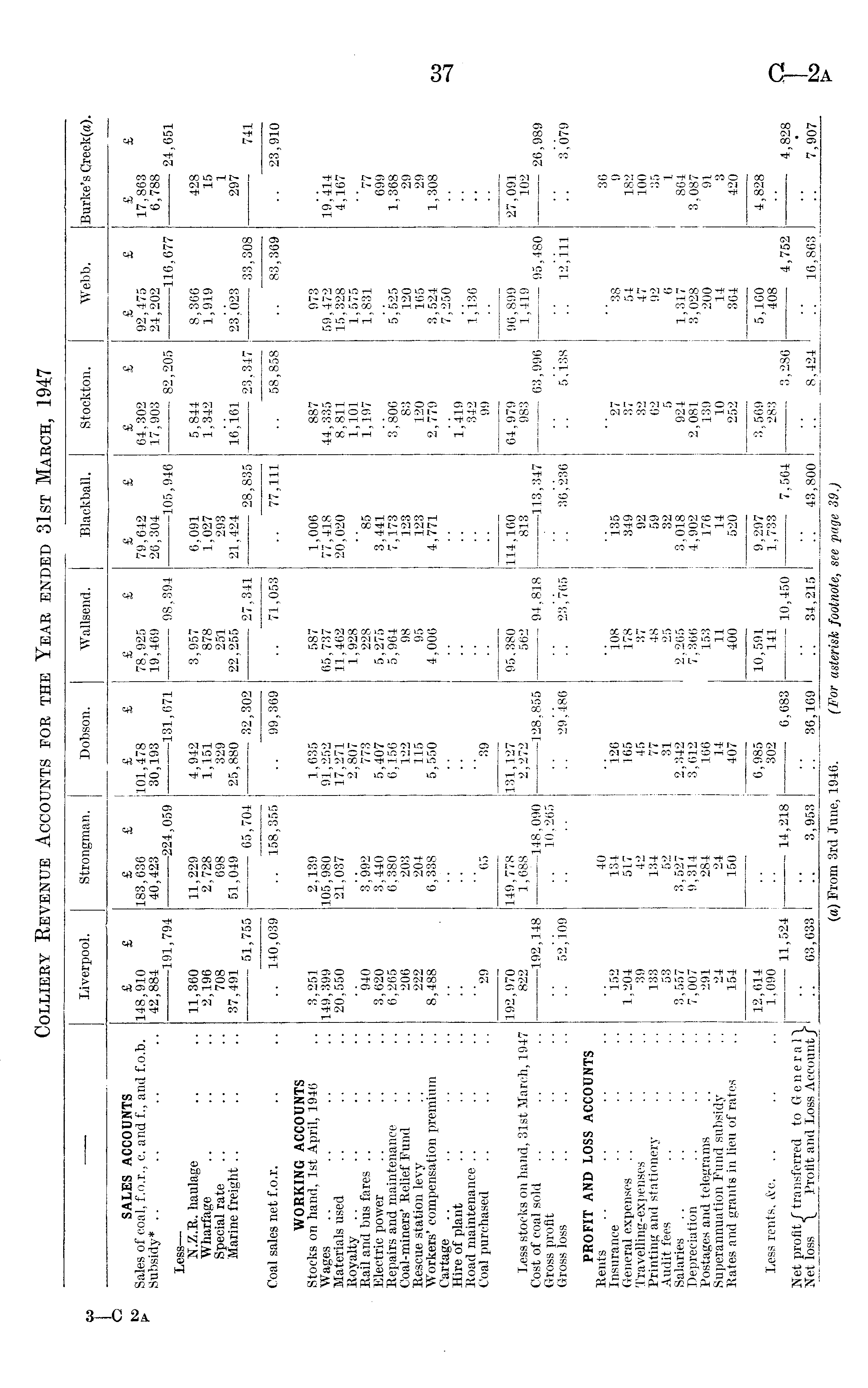 Colliery Revenue Accounts for the Year ended 31st March, 1947