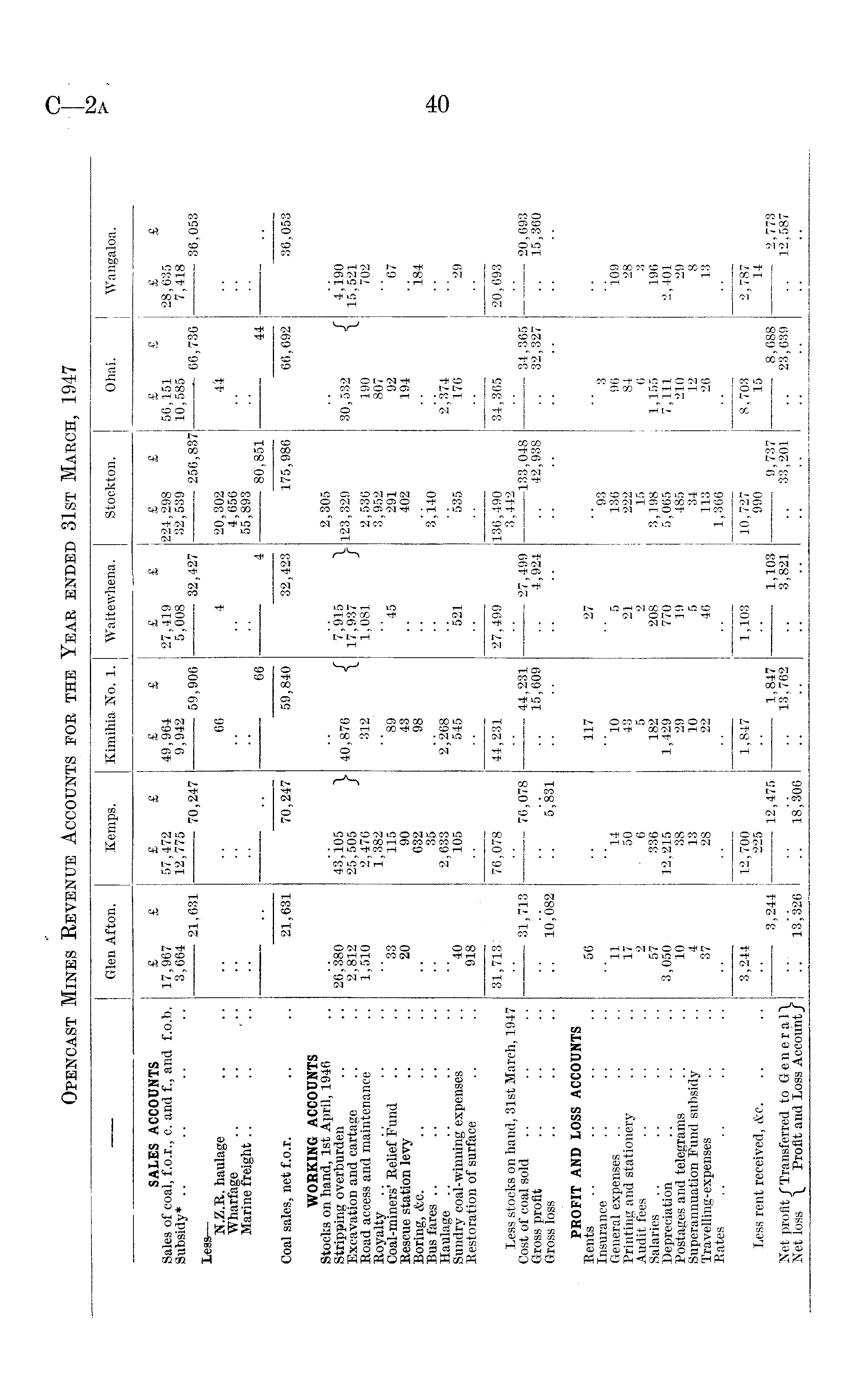 Opencast Mines Revenue Accounts for the Year ended 31st March, 1947