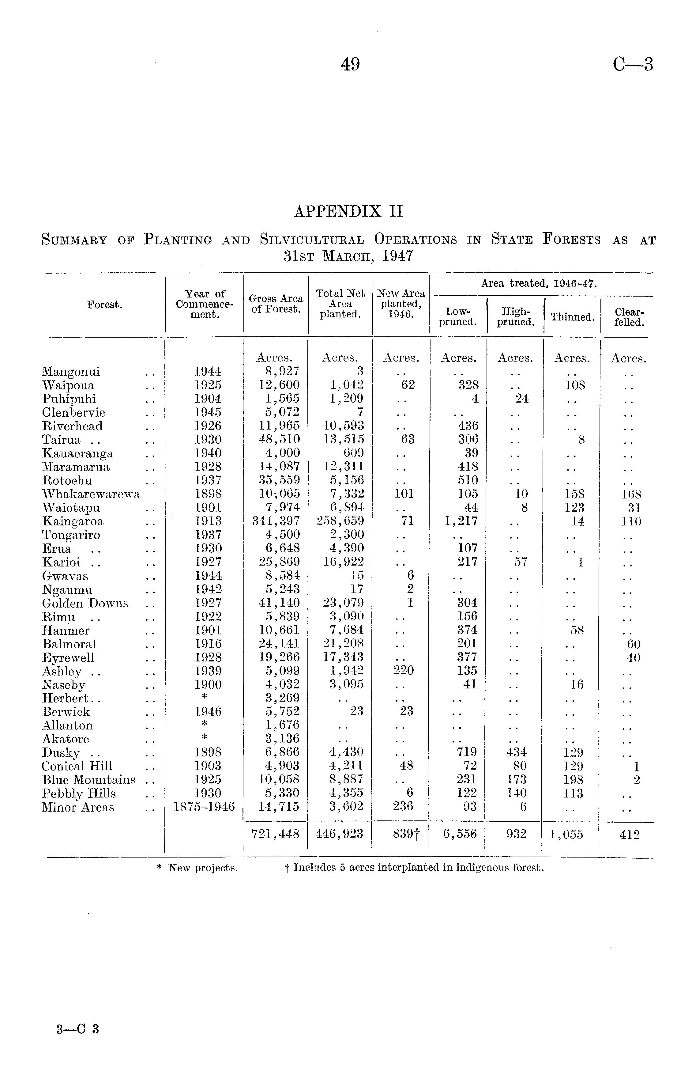 APPENDIX II Summary of Planting and Silvicultural Operations in State Forests as at 31st March, 1947