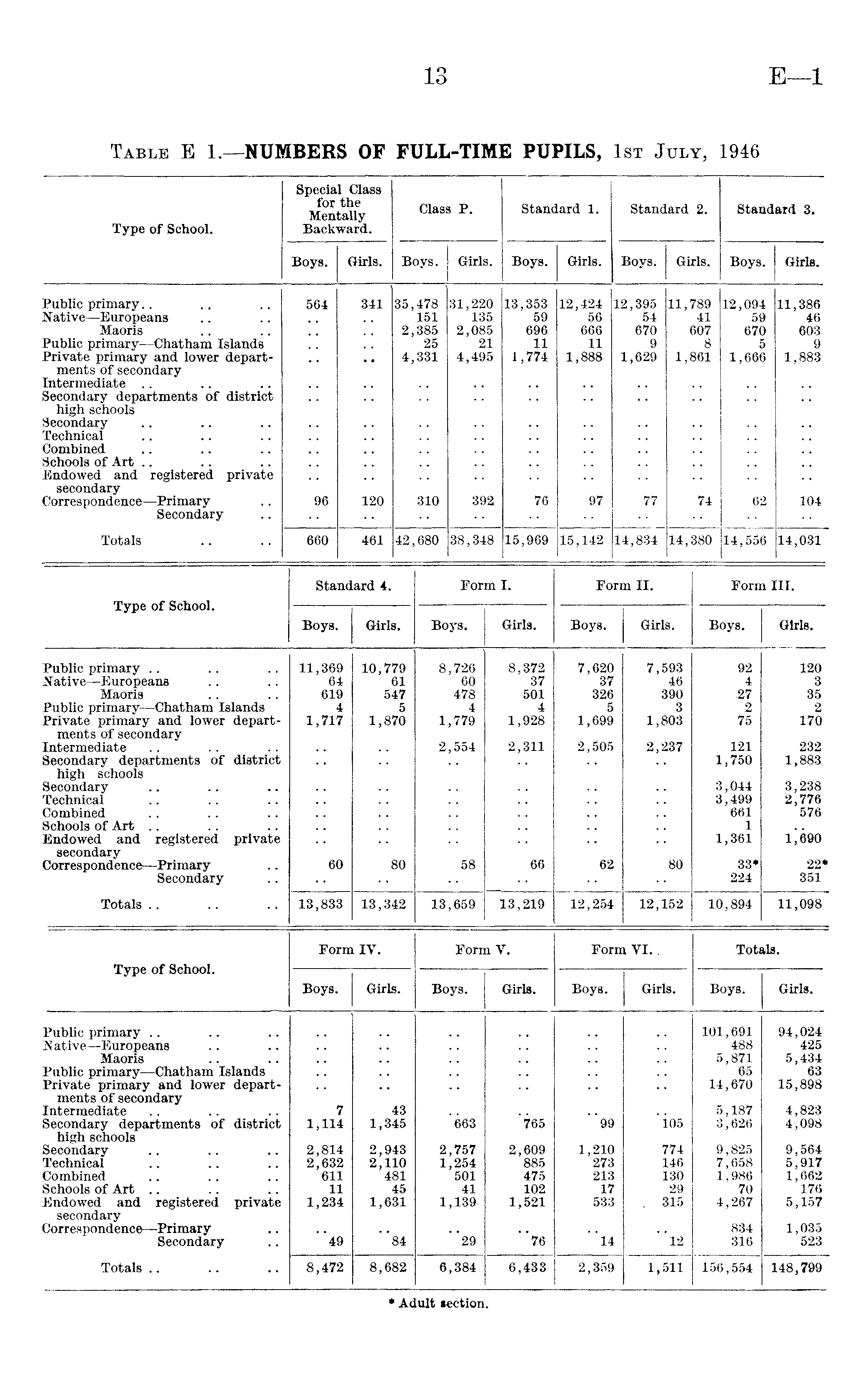 Table E1.—NUMBERS OF FULL-TIME PUPILS, 1st July, 1946