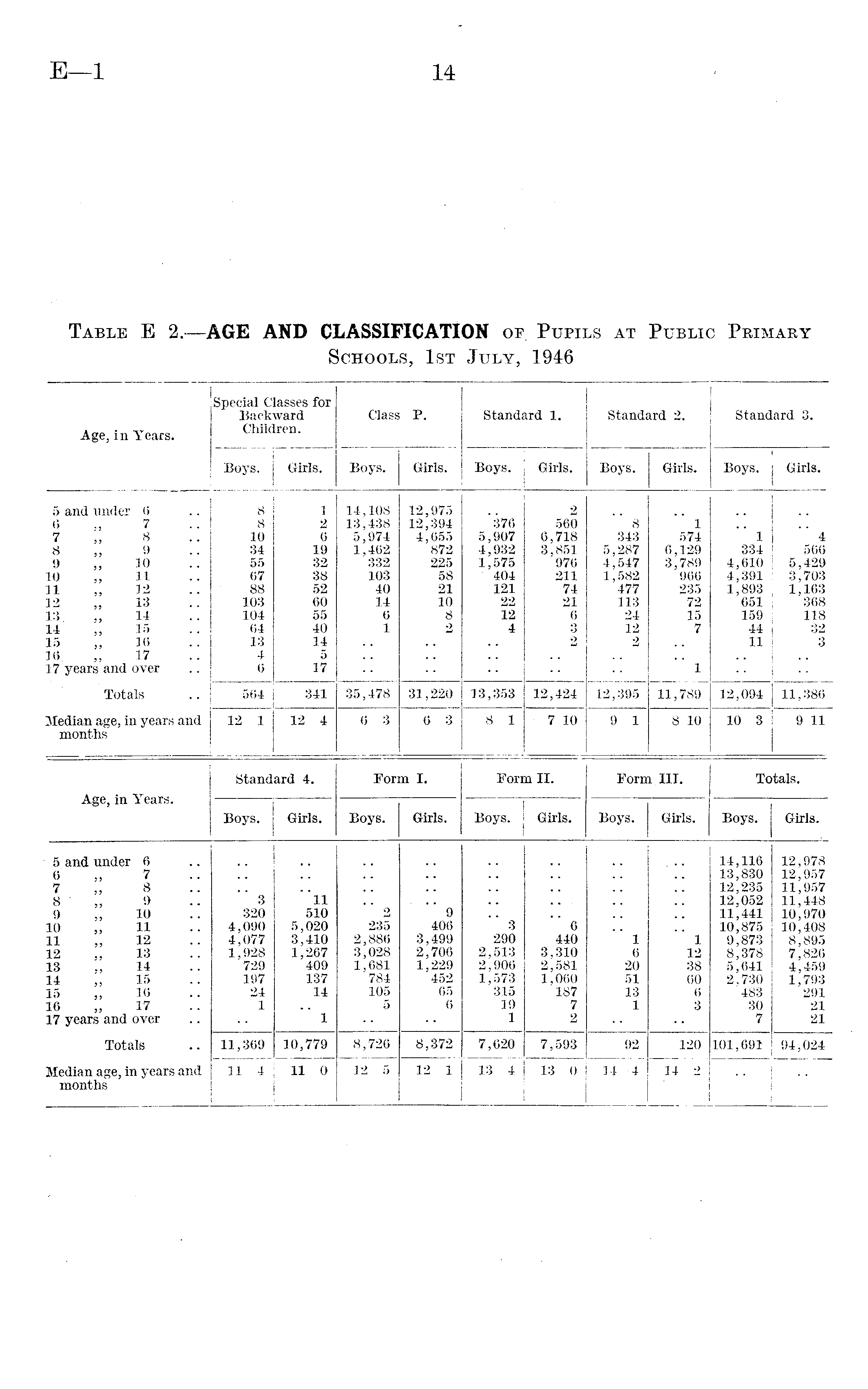 Table E2.—AGE AND CLASSIFICATION of Pupils at Public Primary Schools, 1st July, 1946