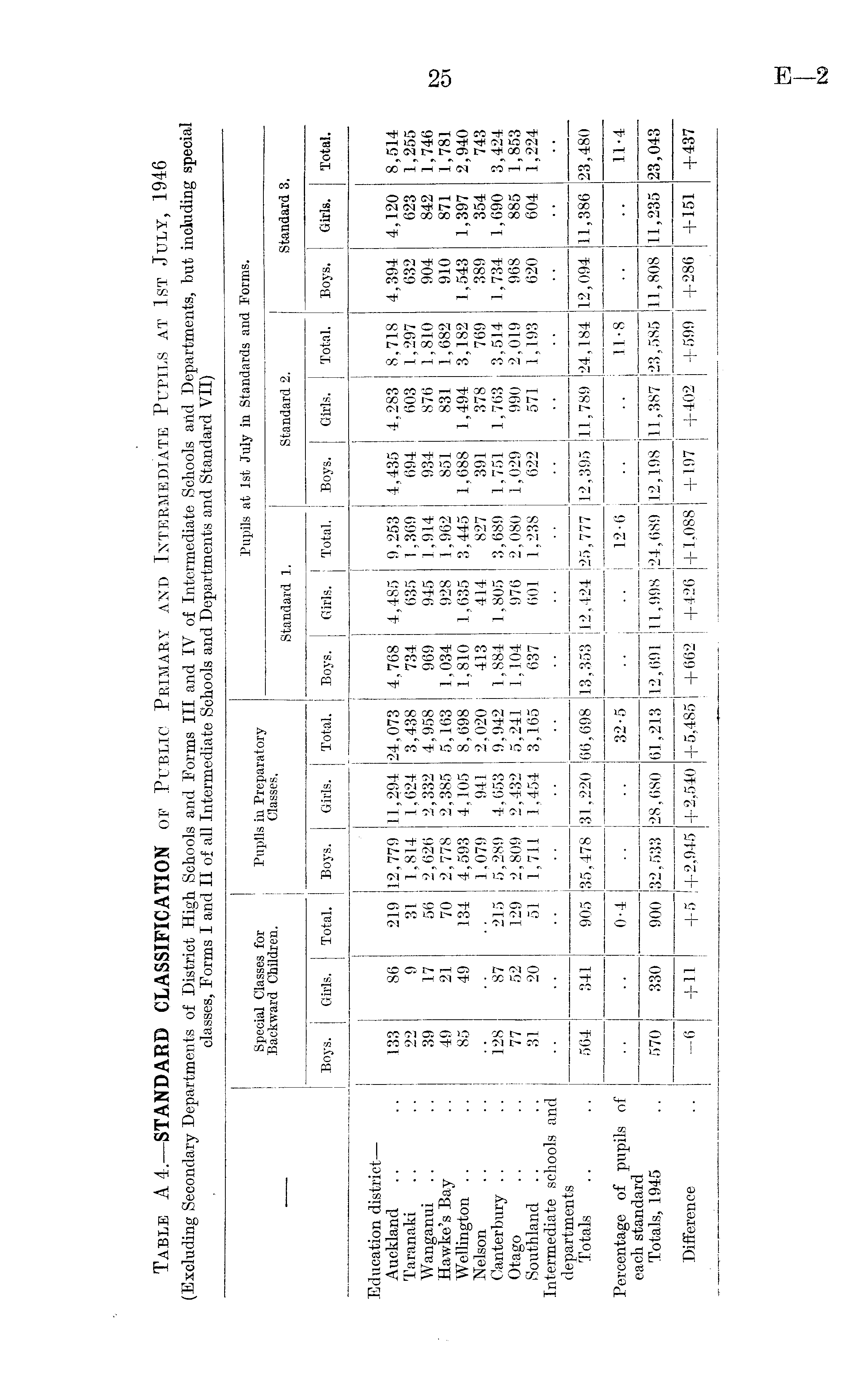 (Excluding Secondary Departments of District High Schools and Forms III and IV of Intermediate Schools and Departments, but including special classes, Forms I and II of all Intermediate Schools and Departments and Standard VII) ■ Special Classes for Backward Children. Pupils in Preparatory Classes. Pupils at 1st July in Standards and Forms. Standard 1. Standard 2. Standard 3. Boys. Girls. Total. Boys. Girls. Total. Boys. Girls. Total. Boys. Girls. Total. Boys. Girls. Total. Education district — Auckland Taranabi Wanganui Hawke's Bay Wellington Nelson Canterbury Otago Southland Intermediate schools and departments Totals Percentage of pupils of each standard Totals, 1945 Difference 133 22 39 49 85 i28 77 31 86 9 17 21 49 87 52 20 219 31 56 70 134 215 129 51 12,779 1,814 2,626 2,778 4,593 1,079 5,289 2,809 1,711 11,294 1,624 2,332 2,385 4,105 941 4,653 2,432 1,454 24,073 3,438 4,958 5,163 8,698 2,020 9,942 5,241 3,165 4,768 734 969 j 1,034 1,810 413 1,884 1,104 637 4,485 635 945 928 1,635 414 1,805 976 601 9,253 1,369 1,914 1,962 3,445 827 3,689 2,080 1,238 4,435 694 934 851 1,688 391 1,751 1,029 622 4,283 603 876 831 1,494 378 1,763 990 571 8,718 1,297 1,810 1,682 3,182 769 3,514 2,019 1,193 4,394 632 904 910 1,543 389 1,734 968 620 4,120 623 842 871 1,397 354 1,690 885 604 8,514 1,255 1,746 1,781 2,940 743 3,424 1,853 1,224 564 341 905 35,478 31,220 66,698 13,353 12,424 25,777 12,395 11,789 24,184 12,094 11,386 23,480 0-4 32-5 12-6 11-8 11-4 570 330 900 32,533 28,680 61,213 12,691 11,998 24,689 12,198 11,387 23,585 11,808 11,235 23,043 -6 + 11 +5 +2,945 +2,540 +5,485 +662 +426 + 1,088 + 197 +402 +599 +286 + 151 +437