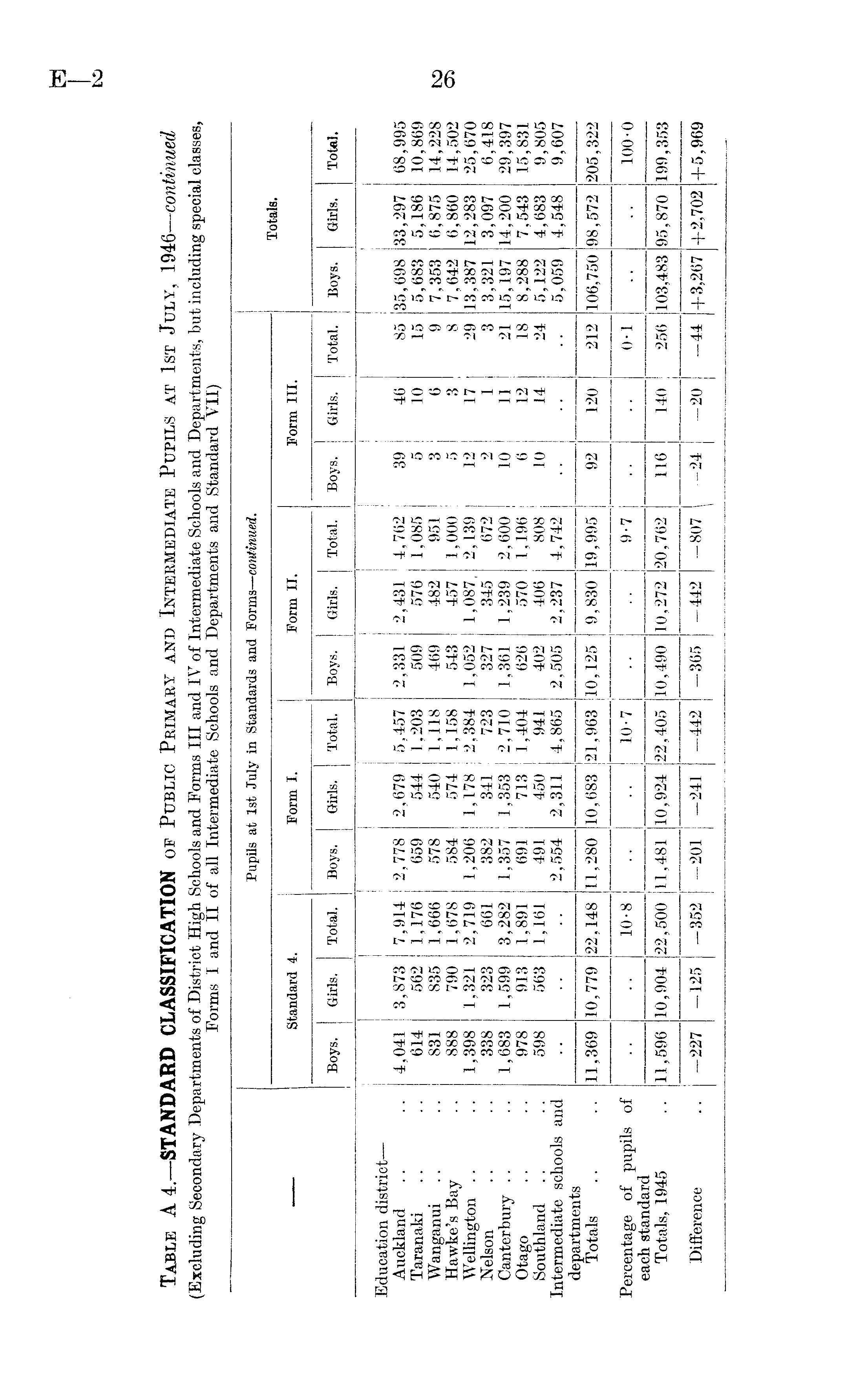 Table A 4.—STANDARD CLASSIFICATION of Public Primary and Intermediate Pupils at 1st July, 1946— continued