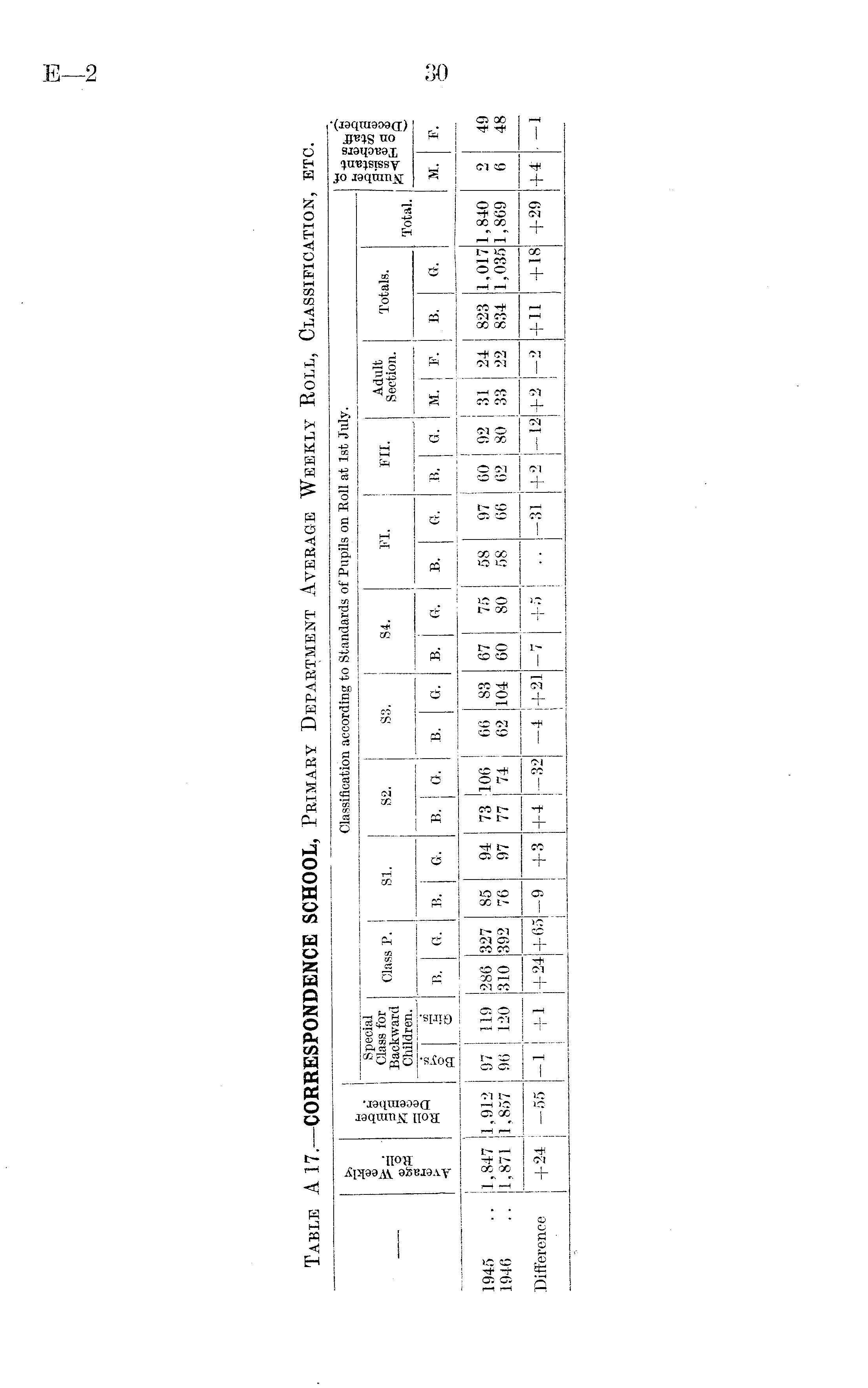 Table A17.—CORRESPONDENCE SCHOOL, Primary Department Average Weekly Roll, Classification, etc.
