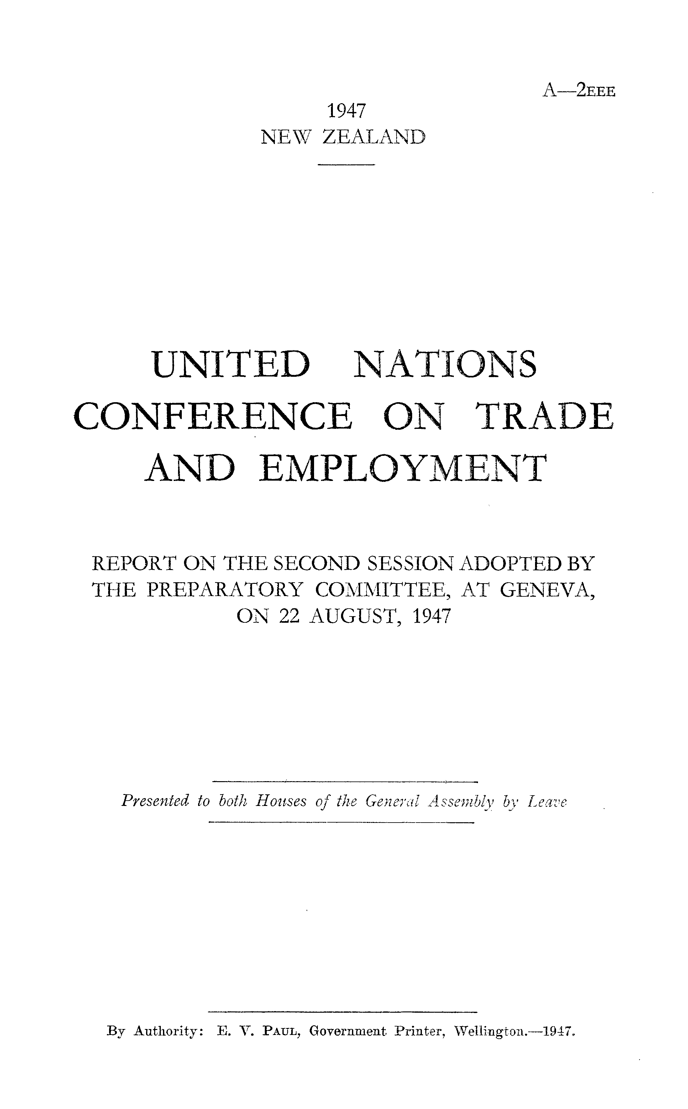 UNITED NATIONS CONFERENCE ON TRADE AND EMPLOYMENT REPORT ON THE SECOND SESSION ADOPTED BY THE PREPARATORY COMMITTEE, AT GENEVA, ON 22 AUGUST, 1947