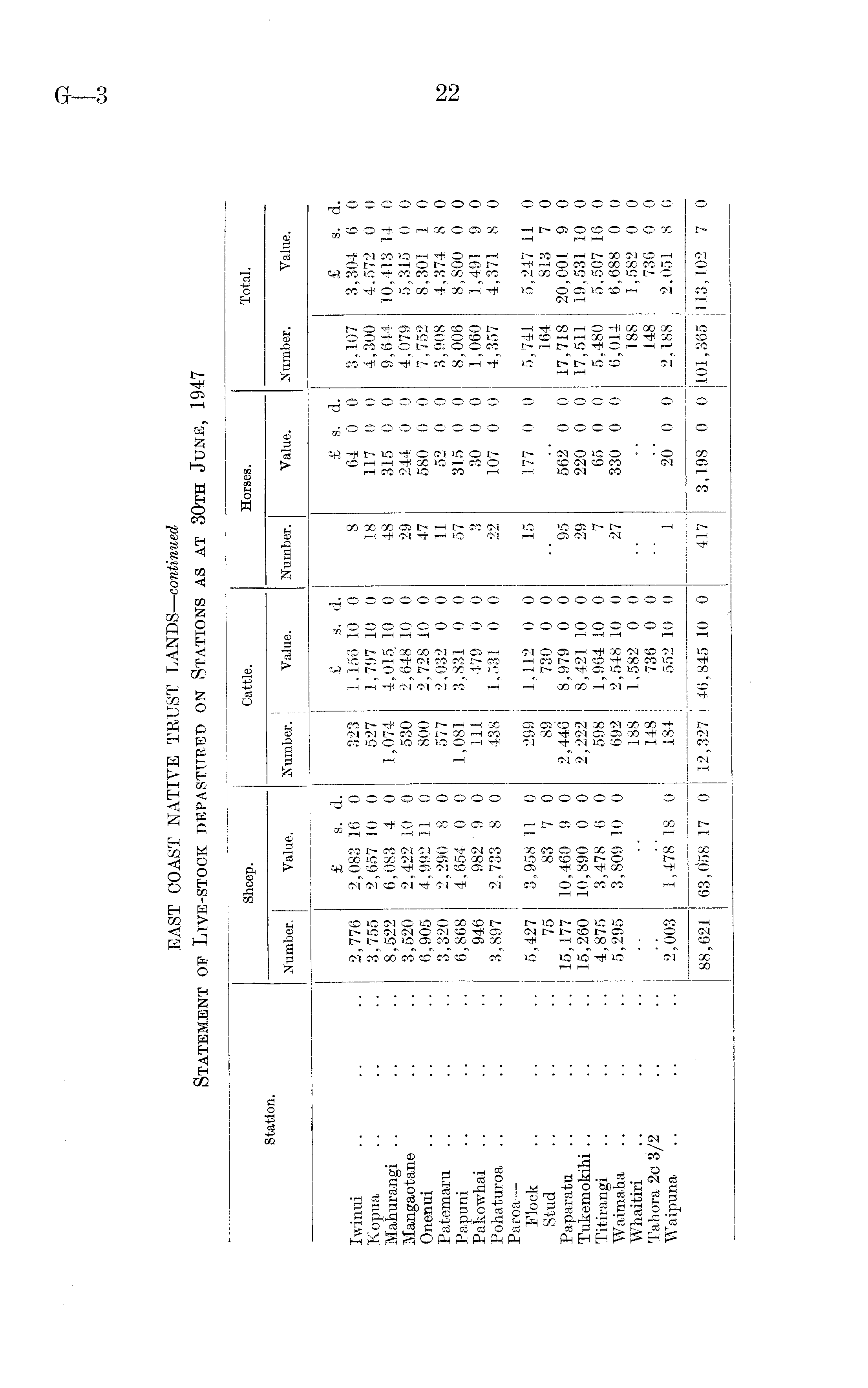 EAST COAST NATIVE TRUST LANDS— continued Statement of Live-stock depastured on Stations as at 30th June, 1947