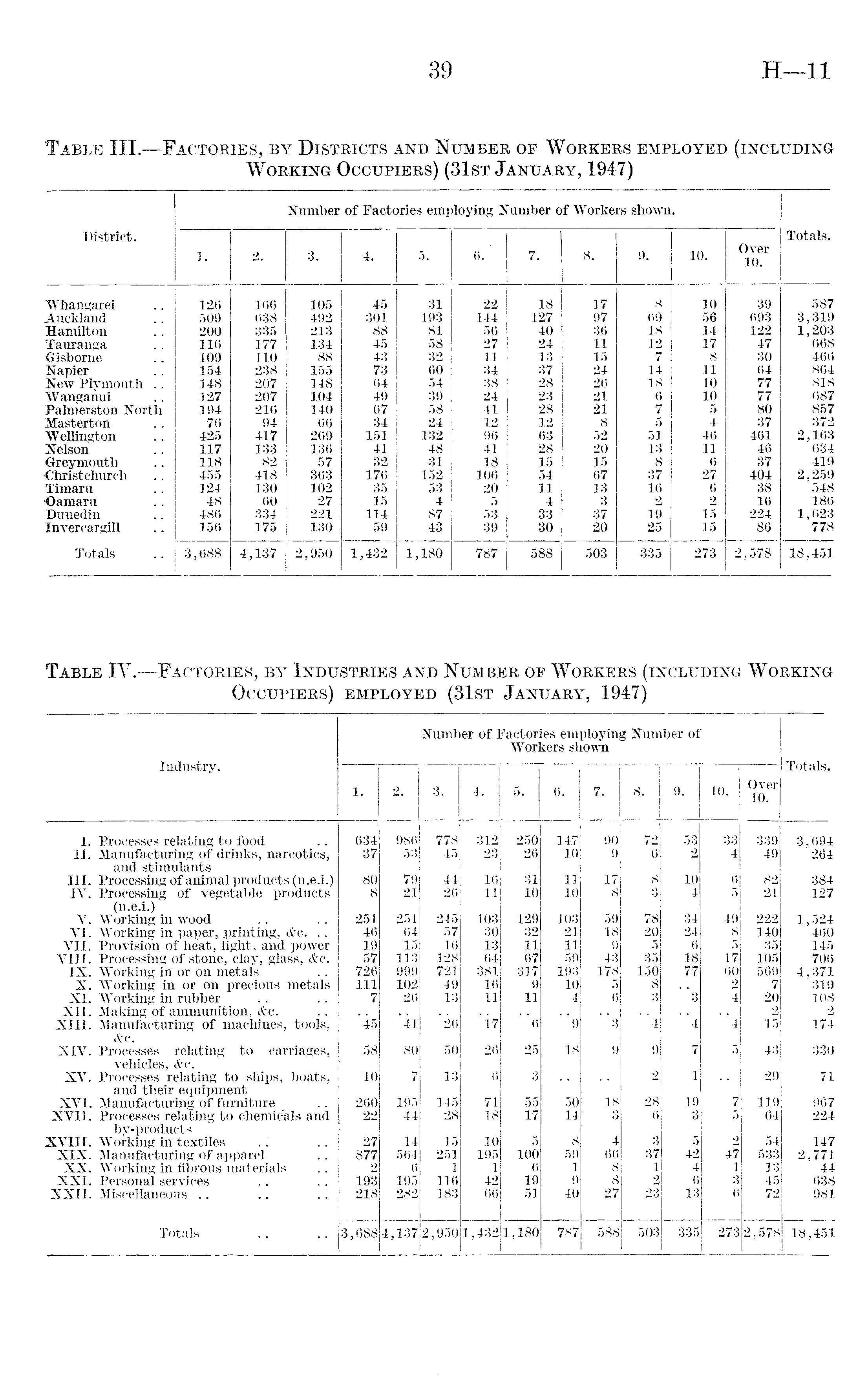 Table IV. —Factories, by Industries and Number of Workers (including Working Occupiers) employed (31st January, 1947)