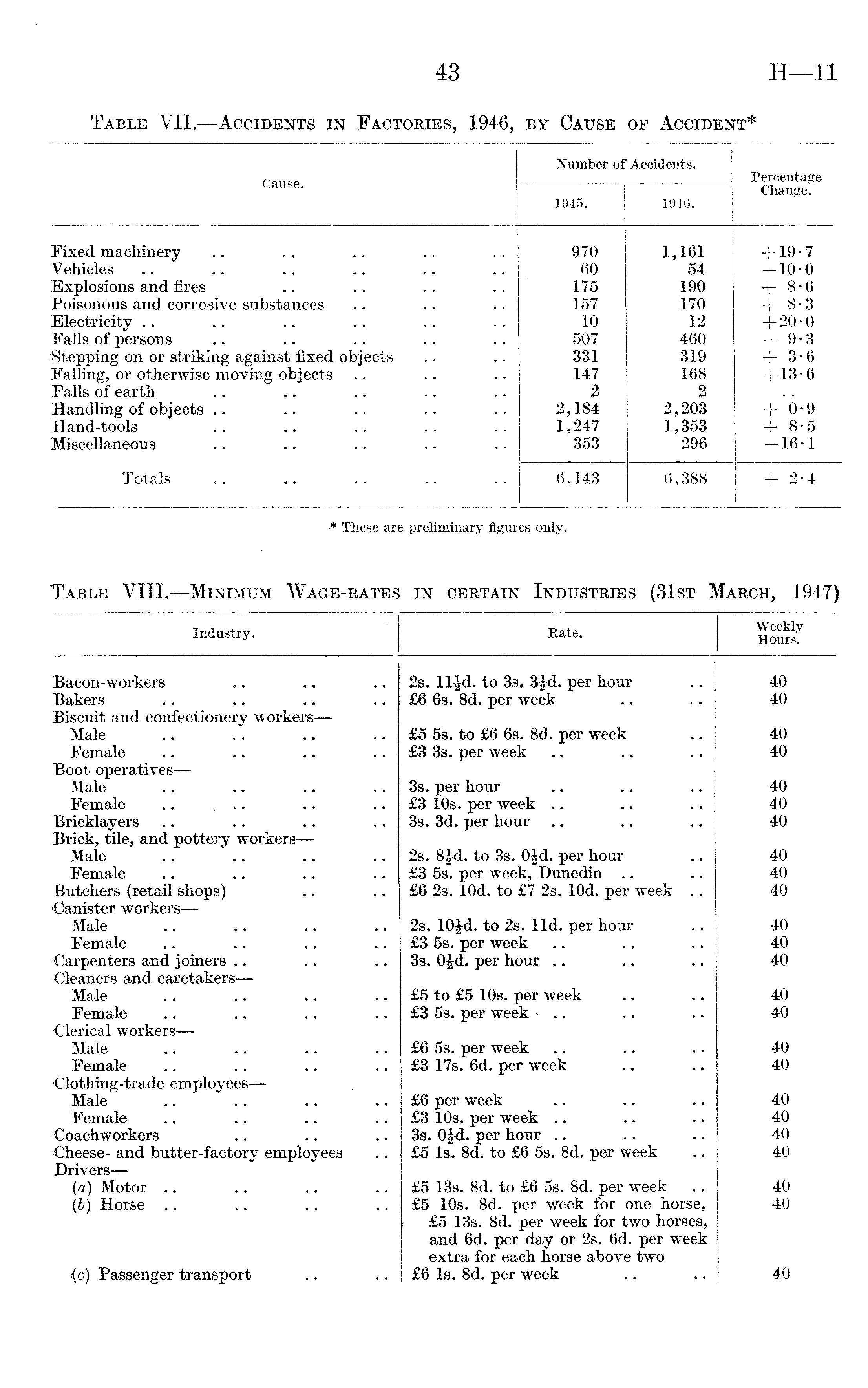 Table VIII.—Minimum Wage-rates in certain Industries (31st March, 1947)