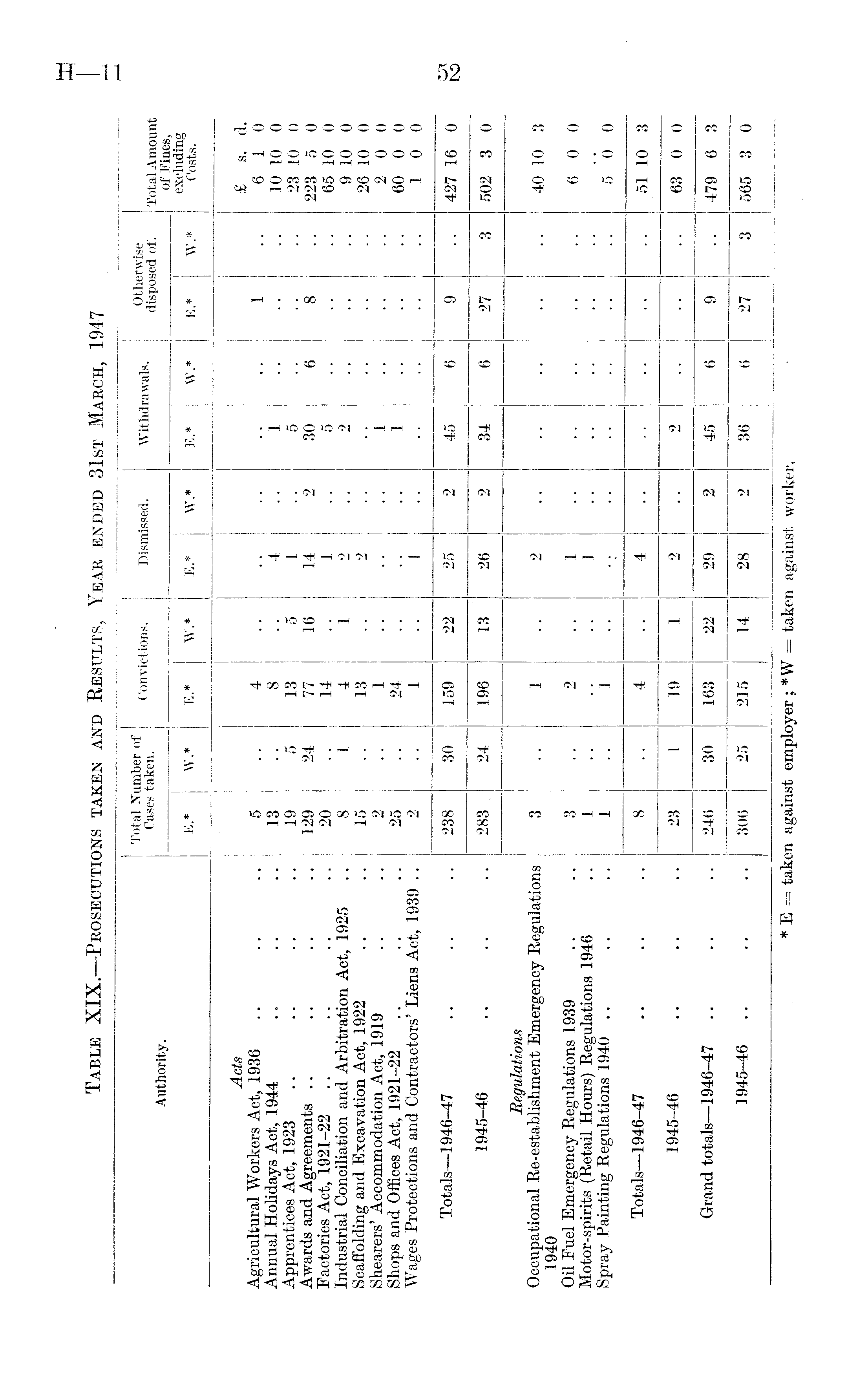 Table XIX.—Prosecutions taken and Results, Year ended 31st March, 1947