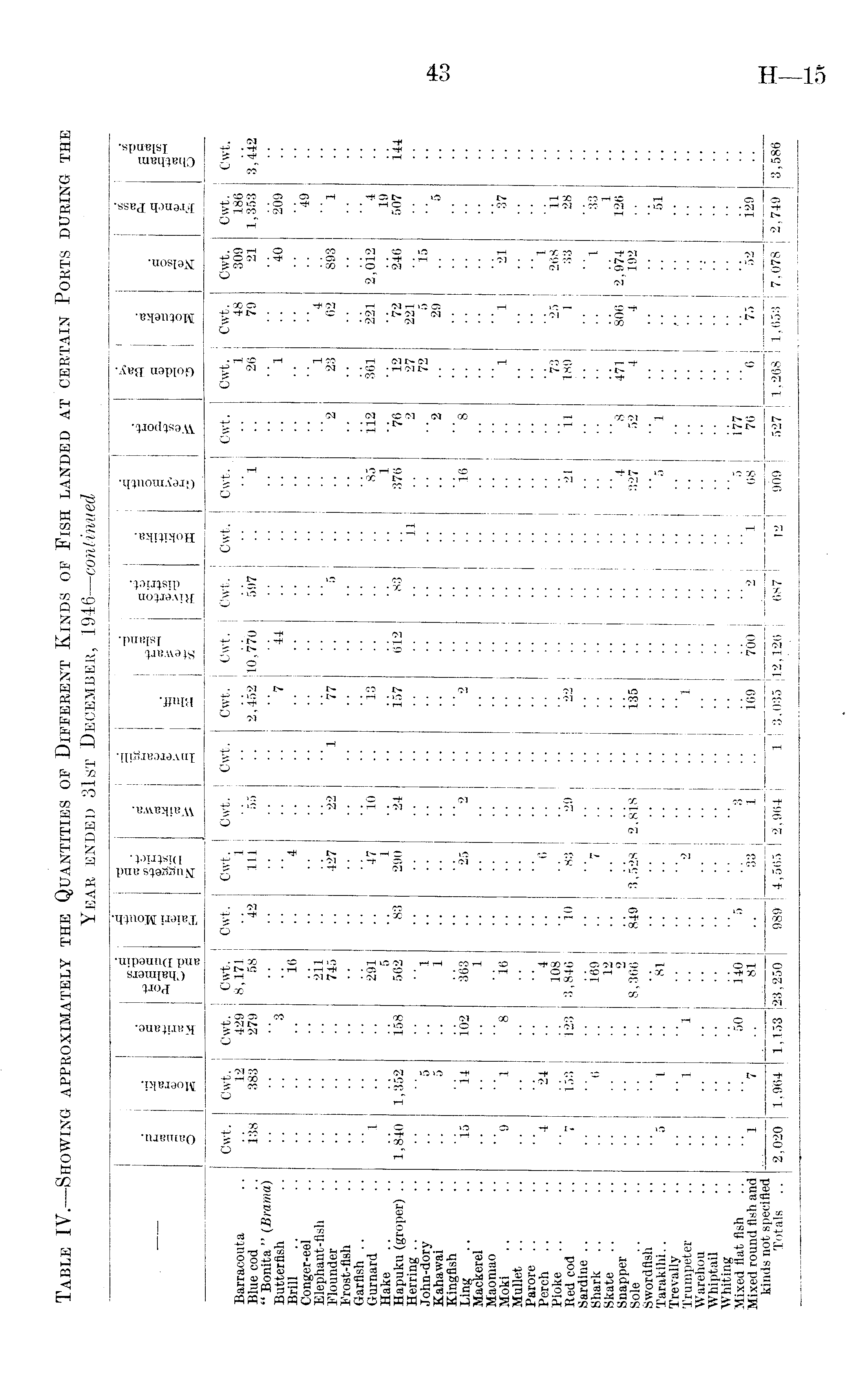 Table IV.—Showing approximately the Quantities of Different Kinds of Fish landed at certain Ports during the Year ended 31st December, 1946— continued