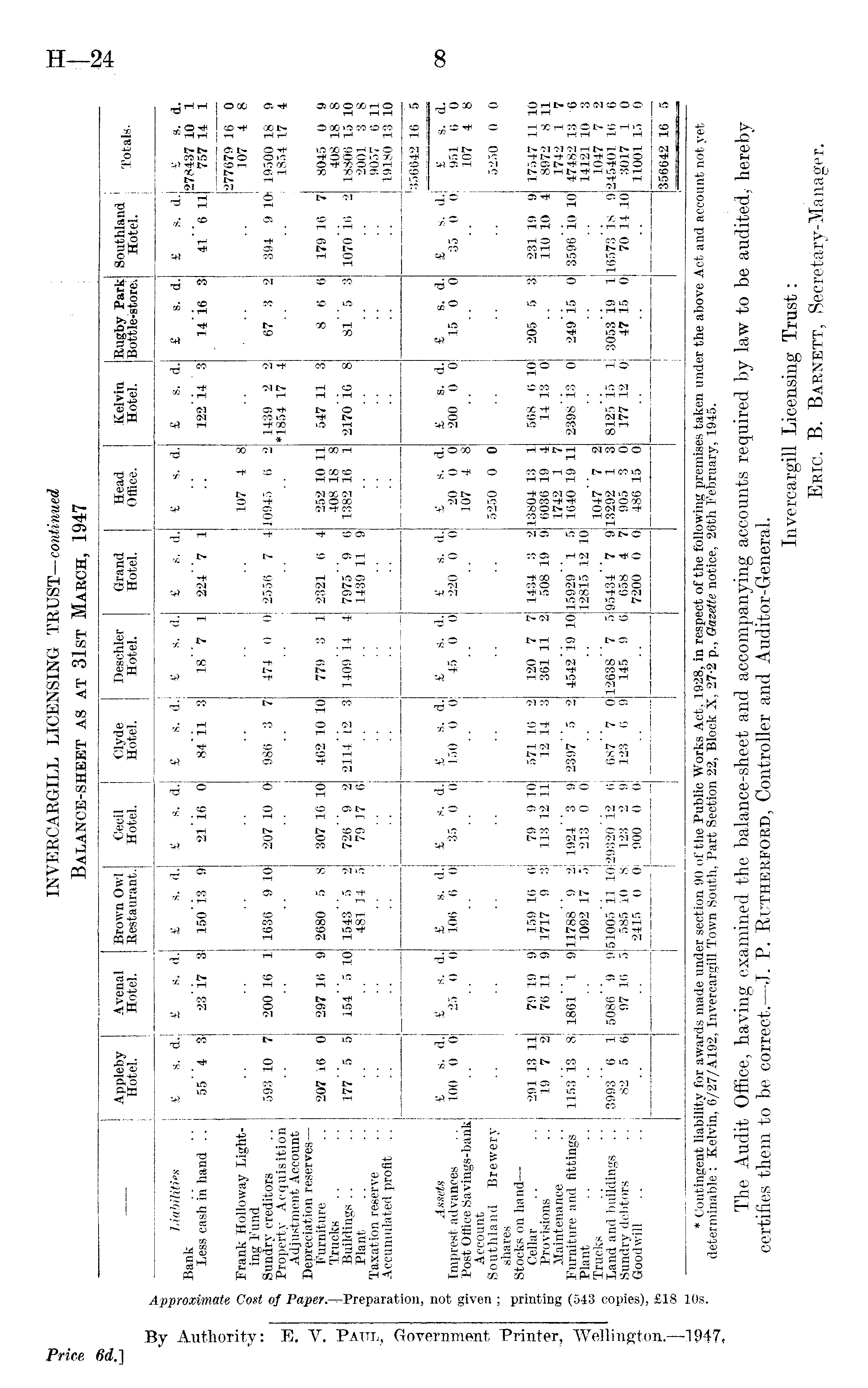 INVERCARGILL LICENSING TRUST- continued Balance-sheet as at 31st March, 1947