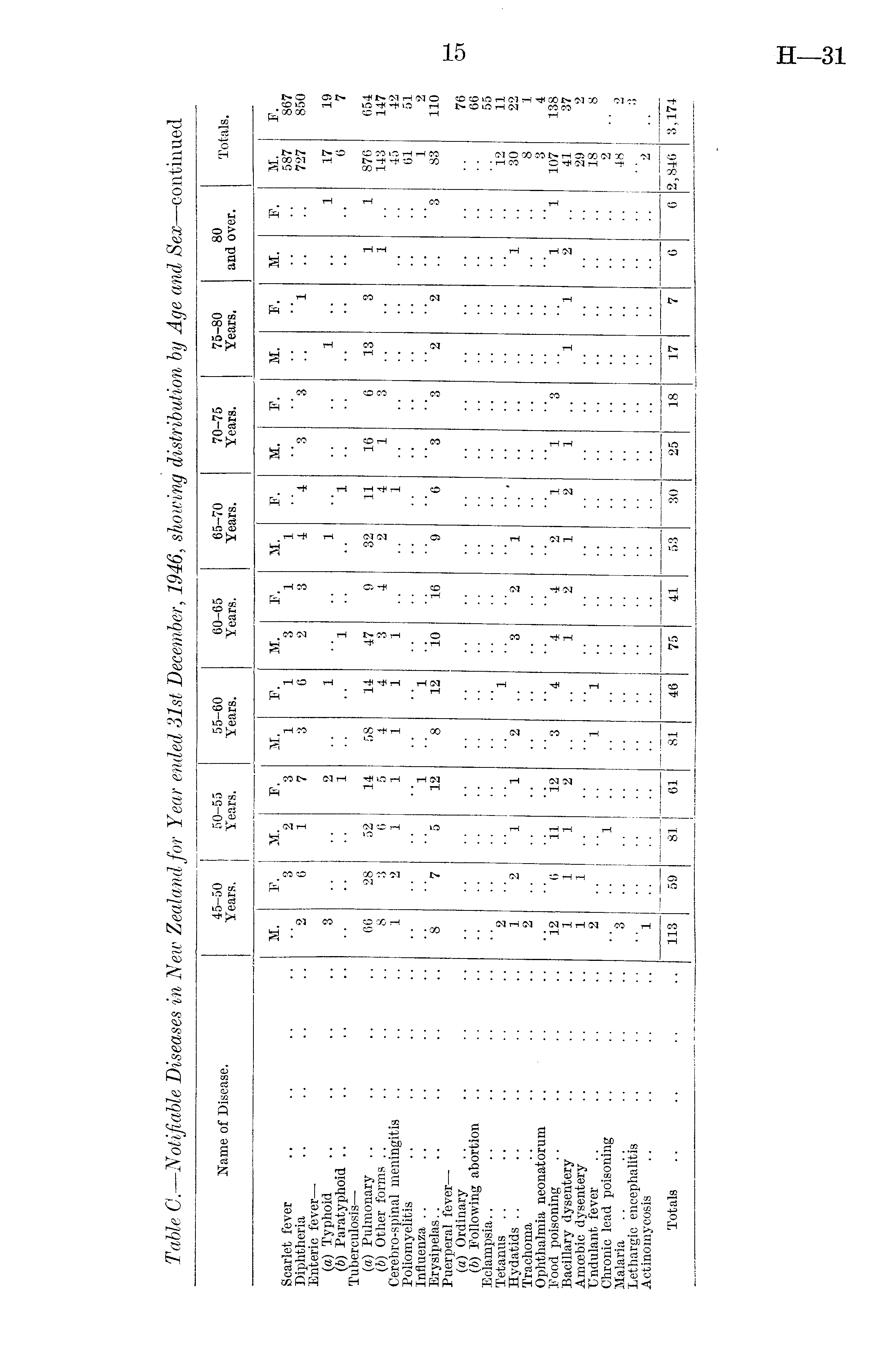 Table C.—Notifiable Diseases in New Zealand for Year ended 31st December, 1946, showing distribution by Age and Sex— continued