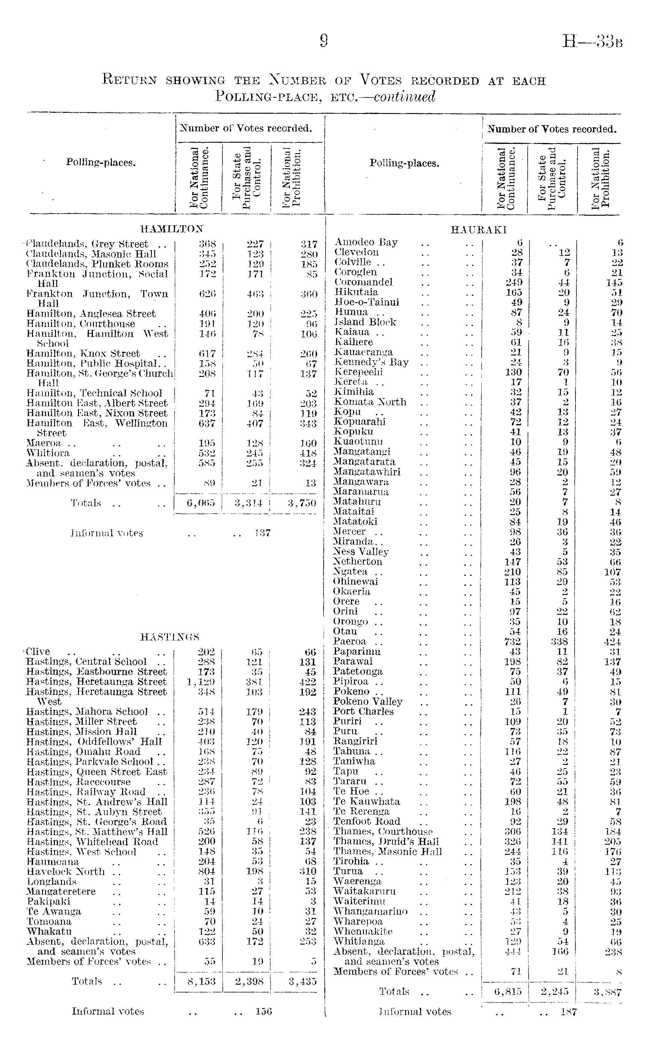 Return showing the Number of Votes recorded at each Polling-place, etc. —continued