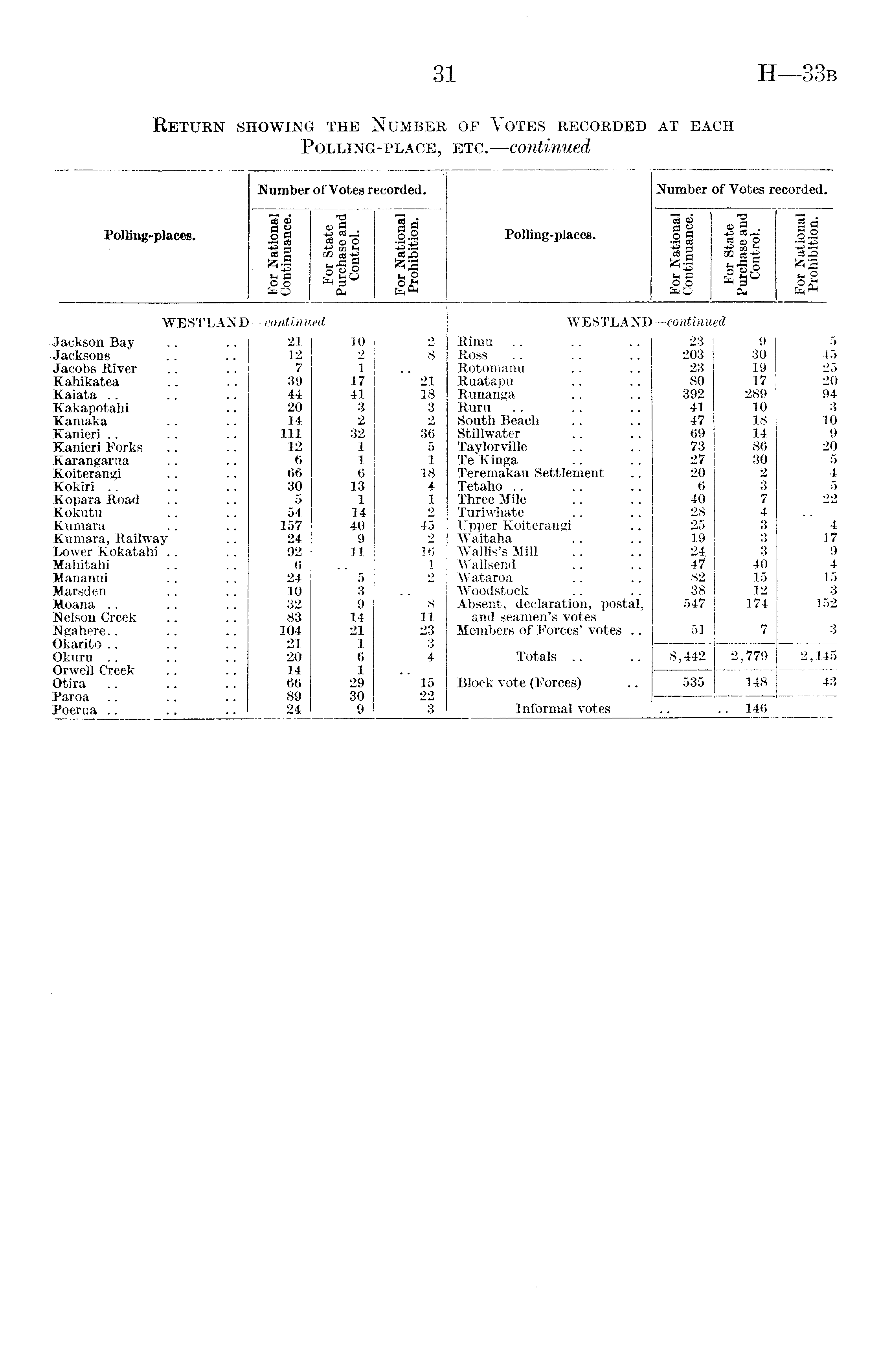 Polling-places. Number of Votes recorded. Polling-places. Number of Votes recorded. "3 <D II - U a ° O o SaO s!L -2 ® 2 ?Jl OCo « 3 cu Jl a 2 *1 si .2g sj u p o o 5aO •a £§_• -3g8 83 Sa a* g 1 - 1 CM a o "§3 IS WESTLAND Jackson Bay ■Jacksons Jacobs River Kahikatea Kaiata Kakapotahi Xamaka Kanieri Kanieri Forks Karangarua Koiterangi Kokiri Kopara Road Kokutu Kumara Kumara, Railway Lower Kokatahi Mahitalii Mananui Marsden Moana Nelson Creek Ngahere Okarito .. Okuru Orwell Creek Otira Paroa .. Poerua .. —continu 21 12 7 39 44 20 14 111 12 6 66 30 5 54 157 24 92 6 24 10 32 83 104 21 20 14 66 89 24 ed 10 2 1 17 41 3 2 32 1 1 6 13 1 14 40 9 11 5 3 9 14 21 1 6 1 29 30 9 2 8 21 18 3 2 36 5 1 18 4 1 2 45 2 16 1 2 8 11 23 3 4 15 22 3 WESTLAND Rimu Ross .. Rotomanu Ruatapu Runanga Ruru South Beach Stillwater Taylorville Te Kinga Teremakau Settlement Tetaho Three Mile Turiwhate Upper Koiterangi Waitaha Wallis's Mill Wallsend Wataroa Woodstock Absent, declaration, postal, and seamen's votes Members of Forces' votes .. Totals Block vote (Forces) Informal votes |—continu 23 203 23 80 392 41 47 69 73 27 20 6 40 28 25 19 5? 82 38 547 51 ed 9 30 19 17 289 10 18 14 86 30 2 3 7 4 3 3 3 40 15 12 174 7 5 45 25 20 94 3 10 9 20 5 4 5 22 4 17 9 4 15 3 152 3 8,442 2,779 2,145 535 148 43 .. 146