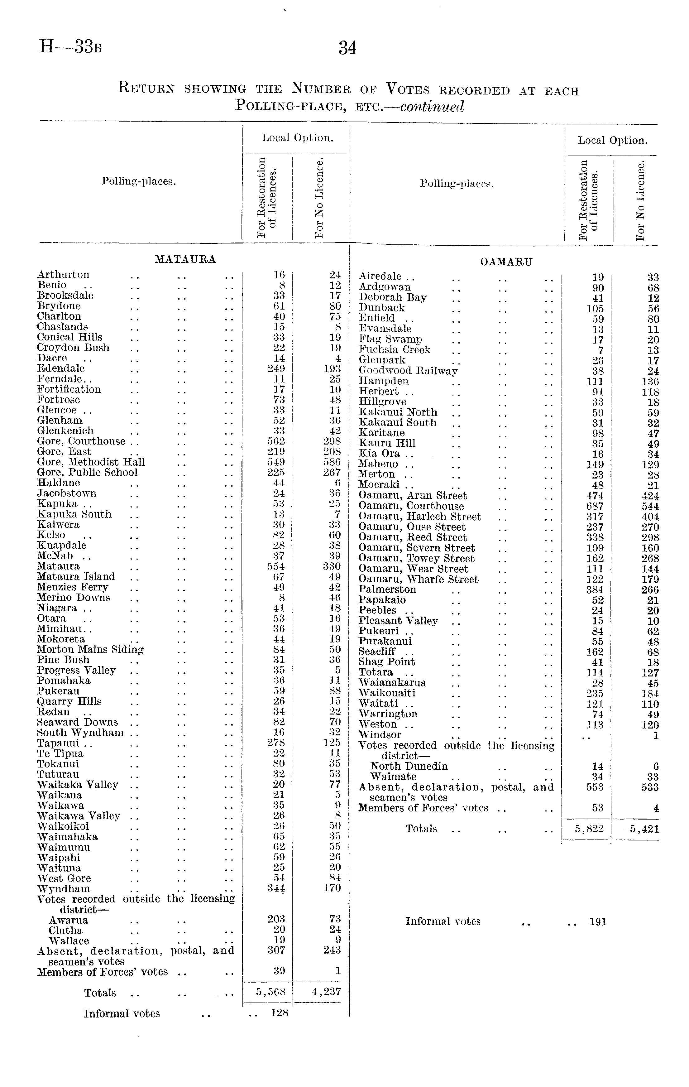 Local Option. Local Option. Polling-places. a o . 11 m O § | 3 Polling-places. £ .2 • li 03 1 3 o £ Is o 125 go £ o go S fR MATAURA OAMARU Arthurton 16 24 Airedale 19 33 Benio 8 12 Ardgowan 90 68 Brooksdale 33 17 Deborah Bay 41 12 Brydone 61 80 Dunback 105 56 Charlton 40 75 Enfield 59 80 Chaslands 15 8 Evansdale 13 11 Conical Hills 33 19 Flag Swamp 17 20 Croydon Bush 22 19 Fuchsia Creek 7 13 Dacre 14 4 Glenpark 26 17 Edendale 249 193 Goodwood Railway 38 24 Ferndale.. 11 25 Hampden 111 136 Fortification 17 10 Herbert 91 118 Fortrose 73 48 Hillgrove 33 18 Glencoe 33 11 ' Kakanui North 59 59 Glenham 52 36 Kakanui South 31 98 32 Grlenkenich 33 42 Karitane 47 Gore, Courthouse 562 298 Kauru Hill .. .! 35 49 Gore, East 219 208 Kia Ora 16 34 Gore, Methodist Hall 549 586 Maheno 149 129 Gore, Public School 225 267 Merton 23 48 28 Haldane 44 6 Moeraki 21 .Tacobstown 24 36 Oamaru, Arun Street 474 424 Kapuka 53 25 Oamaru, Courthouse 687 544 Kapuka South 13 7 Oamaru, Harlech Street 317 404 Kaiwera 30 33 Oamaru, Ouse Street 237 270 Kelso 82 60 Oamaru, Reed Street 338 298 Knapdale 28 38 Oamaru, Severn Street 109 160 McNab 37 39 Oamaru, Towey Street 162 268 Mataura 554 330 Oamaru, Wear Street 111 144 Mataura Island 67 49 Oamaru, Wharfe Street 122 179 Menzies Ferry 49 42 Palmerston 384 266 Merino Downs 8 41 46 18 Papakaio 52 21 Niagara Peebles 24 20 Otara 53 16 Pleasant Valley 15 10 Mimihau.. 36 49 Pukeuri 84 62 Mokoreta 44 19 Purakanui 55 48 68 Morton Mains Siding 84 50 Seacliff 162 Pine Bush 31 36 Shag Point 41 18 Progress Valley 35 5 Totara 114 127 Pomahaka 36 11 Waianakarua 28 45 Pukerau 59 88 Waikouaiti 235 184 Quarry Hills 26 15 Waitati 121 110 Redan 34 22 Warrington 74 49 Seaward Downs 82 70 Weston 113 120 South Wyndham 16 32 Windsor 1 Tapanui 278 125 Votes recorded outside the licensing Te Tipua 22 11 district— Tokanui 80 35 North Dunedin 14 6 Tuturau 32 53 Waimate 34 33 Waikaka Valley 20 77 Absent, declaration, postal, and 553 533 Waikana 21 5 seamen's votes Waikawa 35 9 Members of Forces' votes 53 4 Waikawa Valley Waikoikoi 26 8 26 50 Totals .. .. 5,822 5,421 Waimahaka 65 35 Waimumu 62 55 Waipahi 59 26 Waituna 25 20 West Gore 54 84 Wyndham 344 170 Votes recorded outside the licensing district — Awarua 203 73 Informal votes .. 191 Clutha 20 24 Wallace 19 9 Absent, declaration, postal, and 307 243 seamen's votes Members of Forces' votes 39 1 Totals .. .. ... 5,568 4,237 Informal votes .. 128