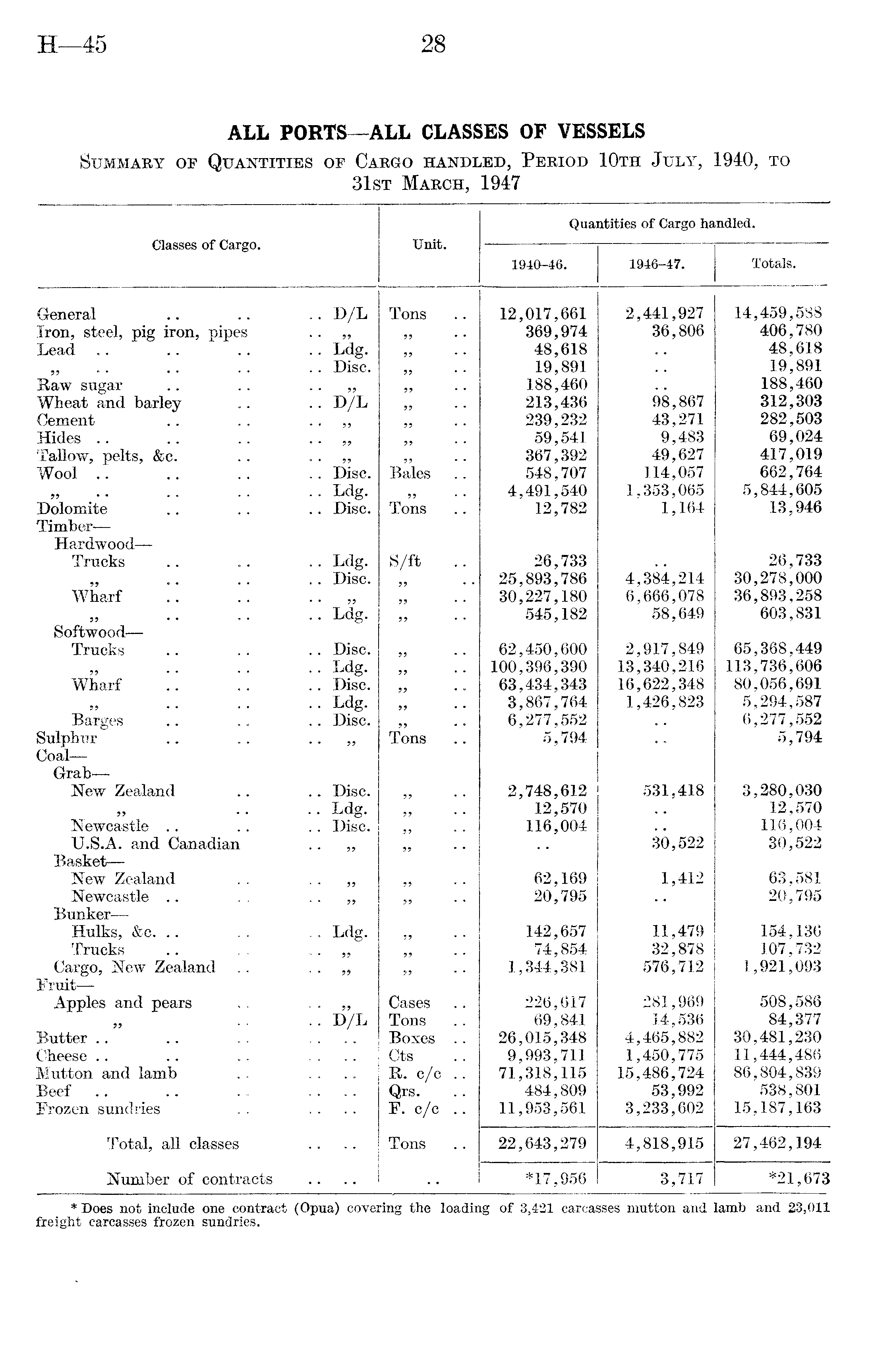 * Does not include one contract (Opua) covering the loading of 3,421 carcasses mutton and lamb and 23,011 freight carcasses frozen sundries.