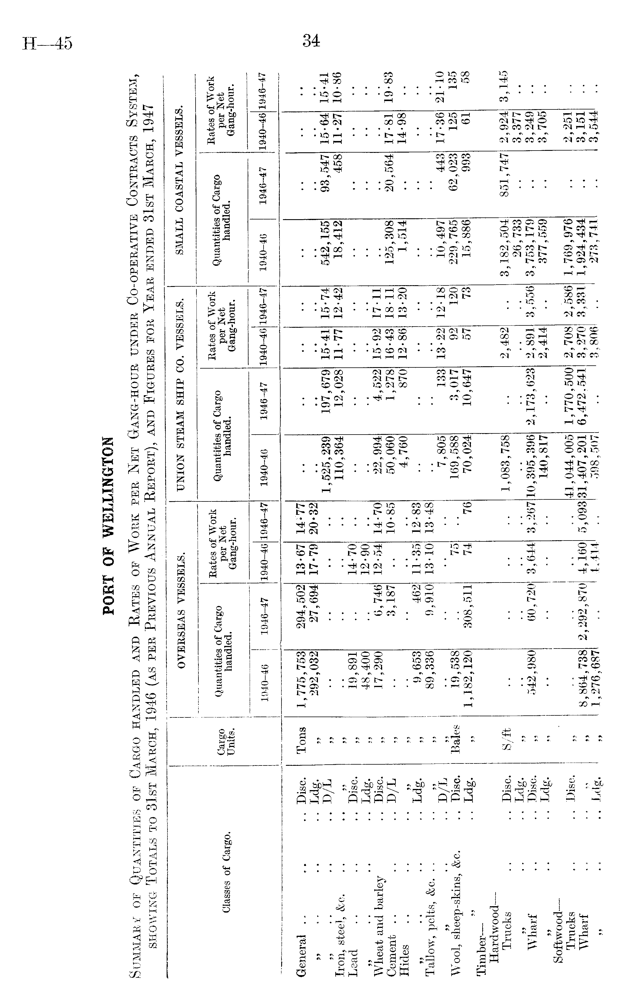 PORT OF WELLINGTON Summary of Quantities of Cargo handled and Rates of Work per Net Gang-hour under Co-operative Contracts System, showing Totals to 31st March, 1946 (as per Previous Annual Report), and Figures for Year ended 31st March, 1947