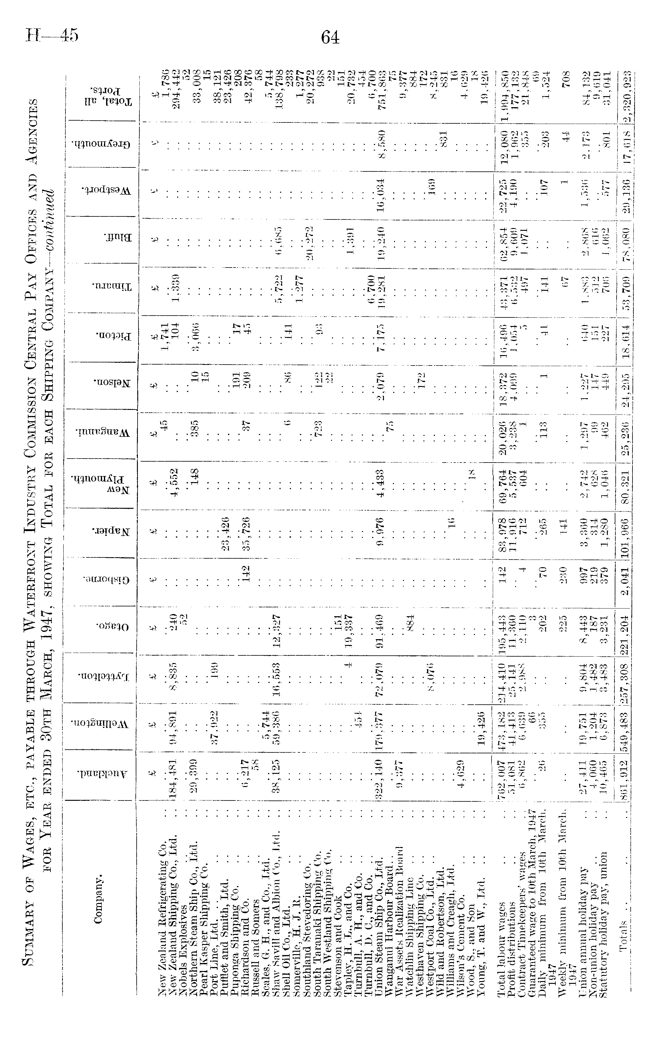Summary of Wages, etc., payable through Waterfront Industry Commission Central Pay Offices and Agencies for Year ended 30th March, 1947, showing Total for each Shipping Company— continued