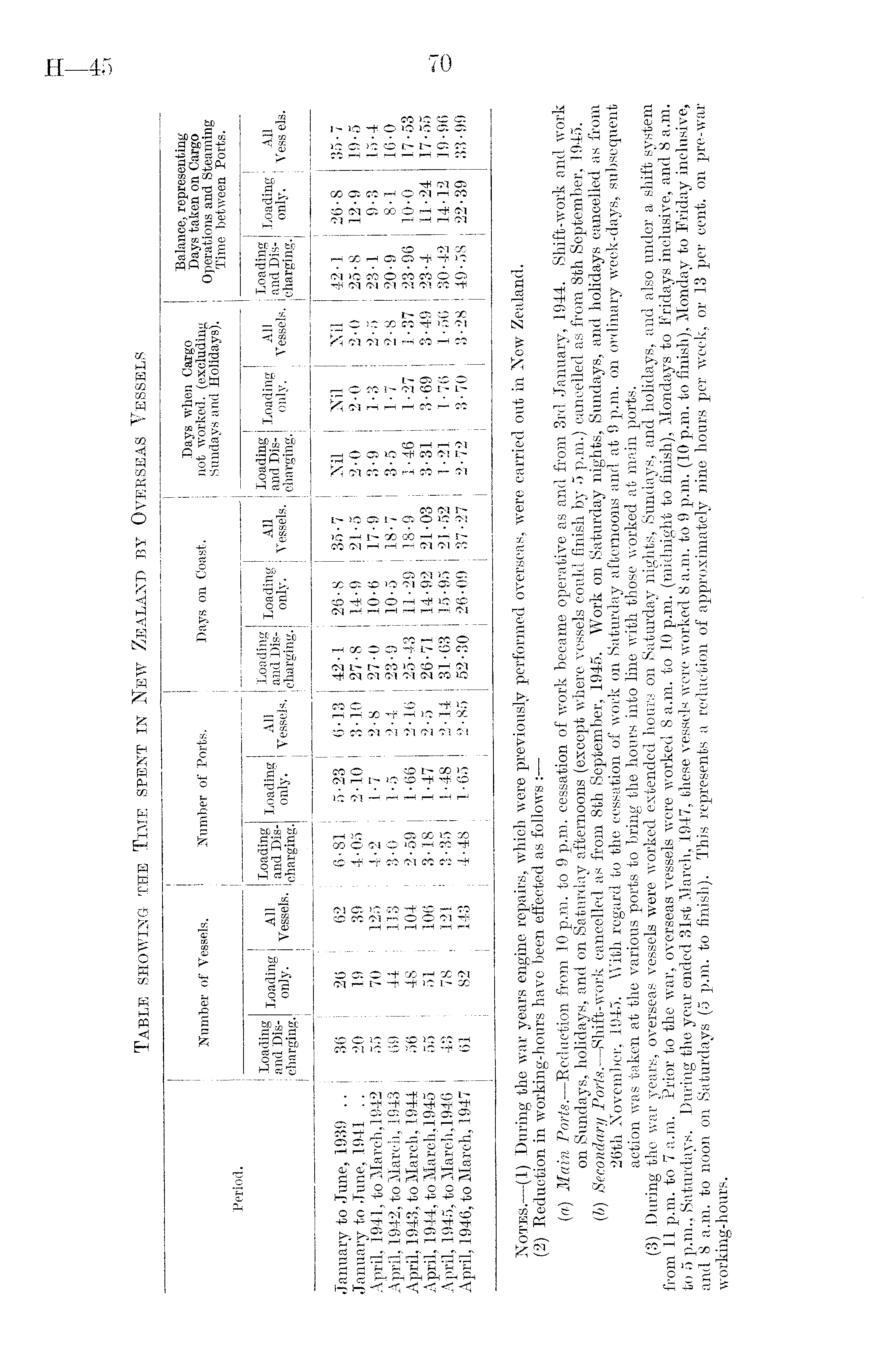 Number of Vessels. Number of Ports. Days on Coast. Days when Cargo not worked, (excluding Sundays and Holidays). Balance, representing Days taken on Cargo Operations and Steaming Time between Ports. Period. Loading and Discharging. Loading only. All Vessels. Loading and Discharging. Loading only. All Vessels. Loading and Discharging. Loading only. All Vessels. Loading and Discharging. Loading only. 4ii j Loading \Wk andDis>essels ' charging. Loading only. All Vess els. January to June, 1939 . . 36 26 62 6-81 5-23 6-13 42-1 26-8 35-7 Nil Nil Nil 42-1 26-8 35-7 January to June, 1941 April, 1941, to March,1942 20 19 39 4-05 2-10 3-10 27-8 14-9 21-5 2-0 2-0 2-0 25-8 12-9 19-5 55 70 125 4-2 1-7 2-8 27-0 10-6 17-9 3-9 1-3 2-5 23-1 9-3 15-4 April, 1942, to March, 1943 69 44 113 3-0 1-5 2-4 23-9 10-5 18-7 3-5 1-7 2-8 20-9 8-1 16-0 April, 1943, to March, 1944 April, 1944, to March, 1945 56 48 104 2-59 1-66 2-16 25-43 11-29 18-9 1-46 1-27 1-37 23-96 10-0 17-53 55 51 106 3-18 1-47 2-5 26-71 14-92 21-03 3-31 3-69 3-49 23-4 11-24 17-55 April, 1945, to March, 1946 43 78 121 3-35 1-48 2-14 31-63 15-95 21-52 1-21 1-76 1-56 30-42 14-12 19-96 April, 1946, to March, 1947 61 82 143 4-48 1-65 2-85 52-30 26-09 37-27 2-72 3-70 3-28 49-58 22-39 33-99