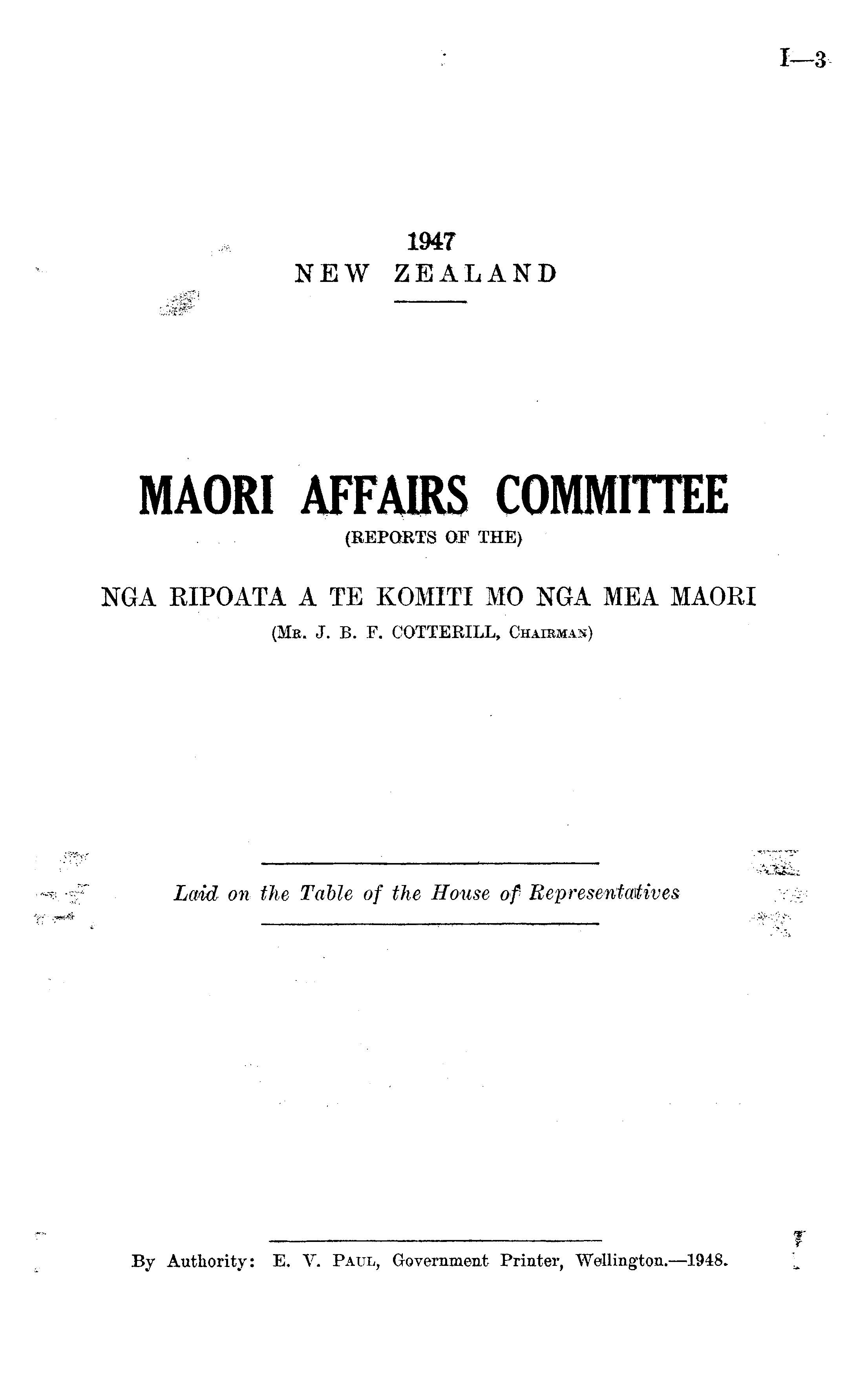 MAORI AFFAIRS COMMITTEE (REPORTS OF THE) NGA RIPOATA A TE KOMITI MO NGA MEA MAORI (Mr. J. B. F. COTTERILL, Chairman)