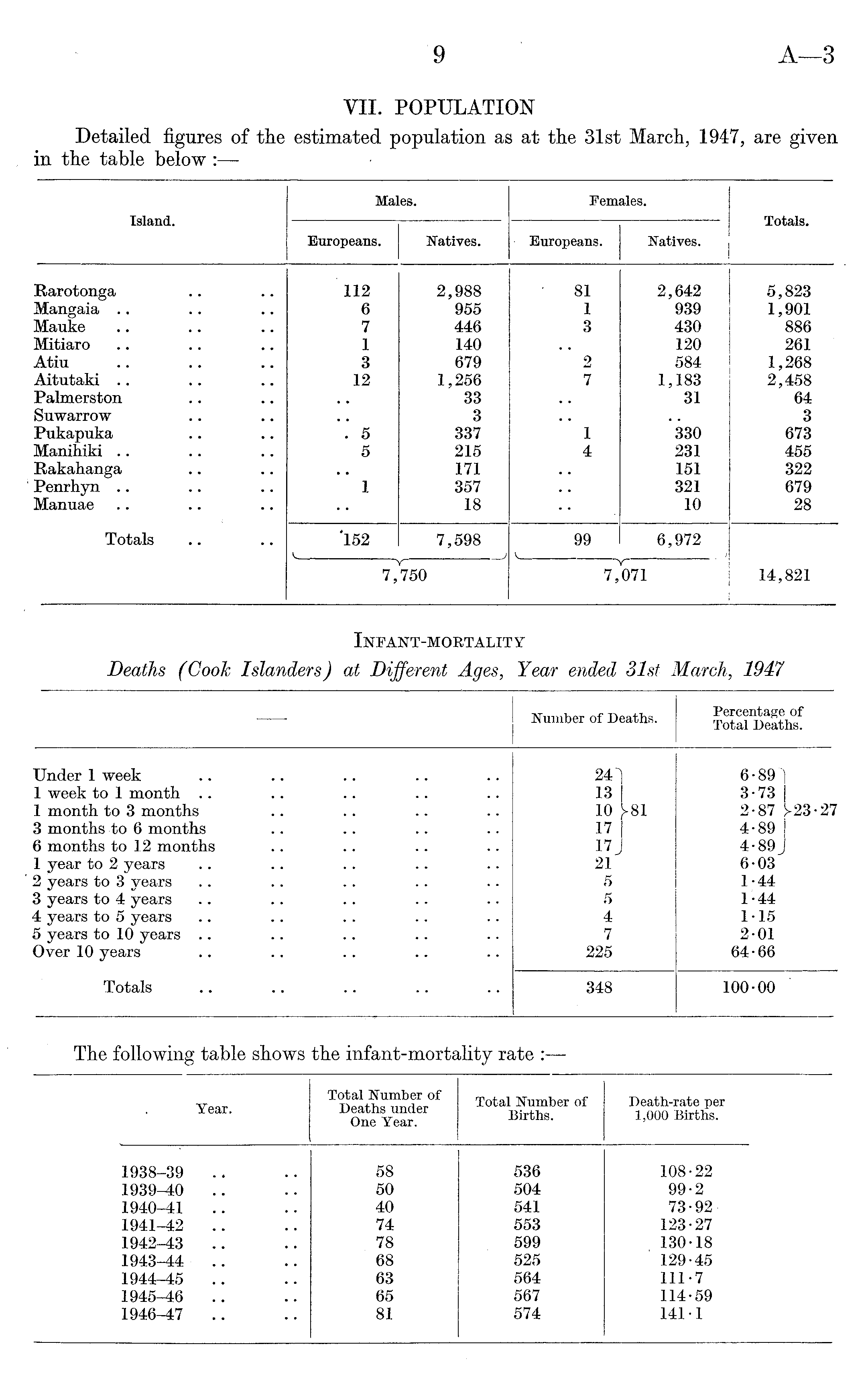 VII. POPULATION Detailed figures of the estimated population as at the 31st March, 1947, are given in the table below