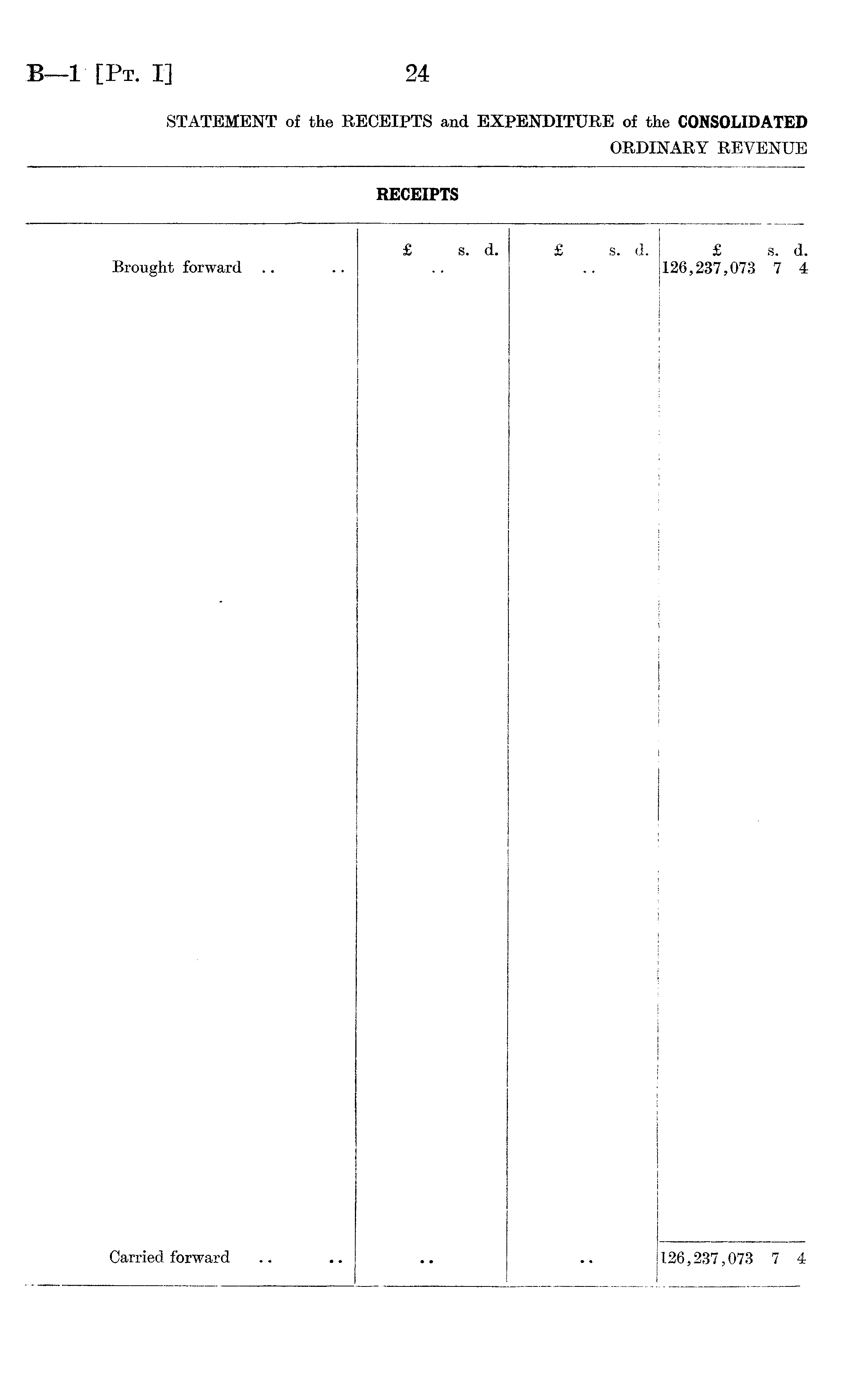 RECEIPTS £ s. d. £ s. d. £ s. d. Brought forward 1 1 126,237,073 7 4 i I i j | i i j ! ! Carried forward •• •• 126,237,073 7 4