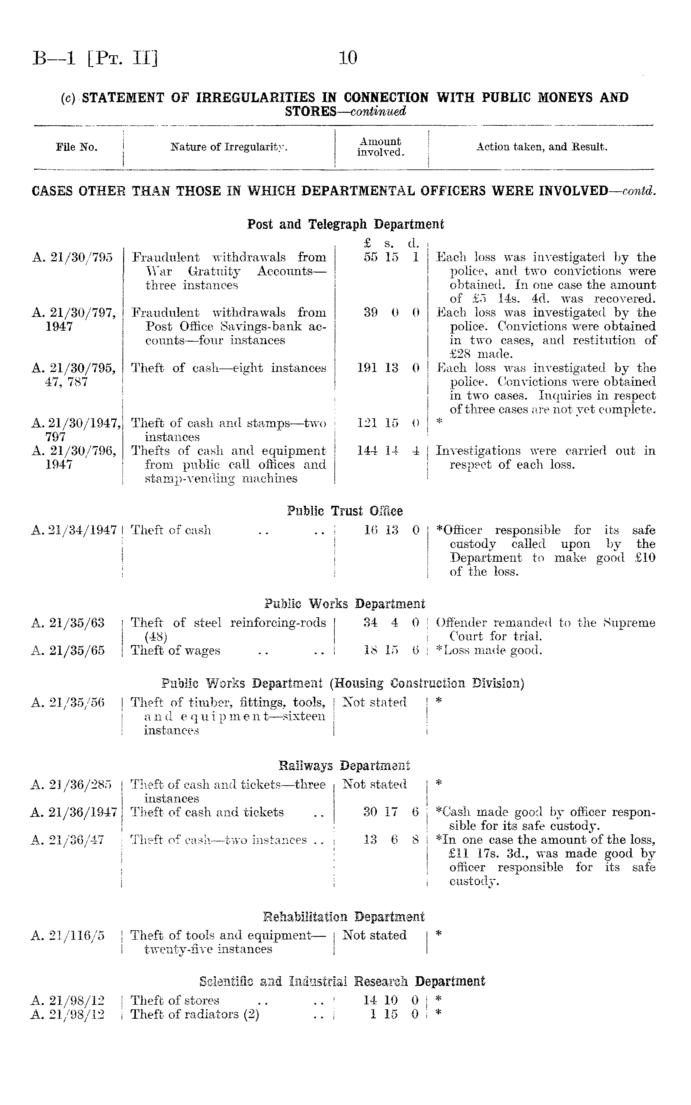 (c) STATEMENT OF IRREGULARITIES IN CONNECTION WITH PUBLIC MONEYS AND STORES —continued
