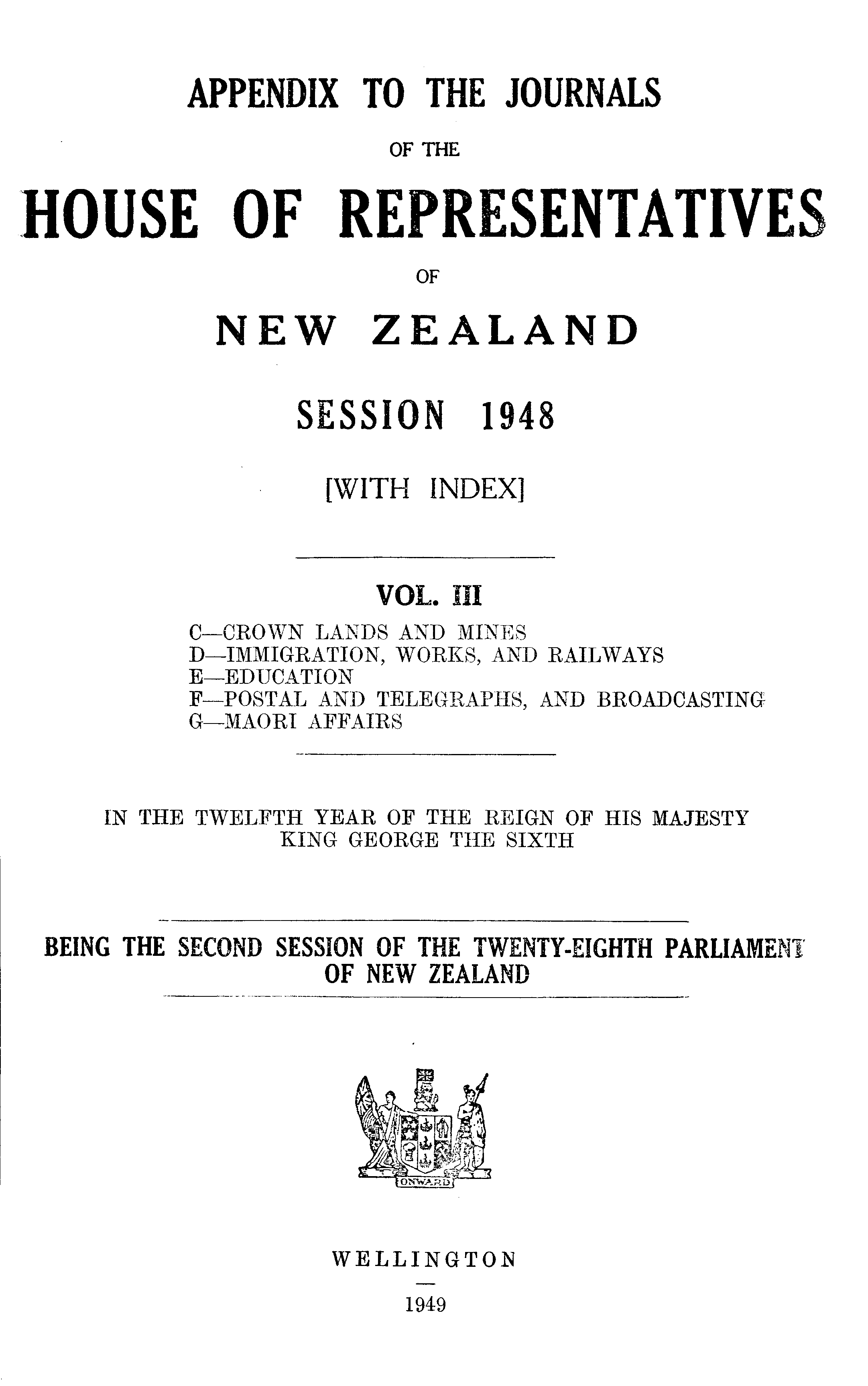 APPENDIX TO THE JOURNALS OF THE HOUSE OF REPRESENTATIVES OF NEW ZEALAND SESSION 1948 [WITH INDEX]