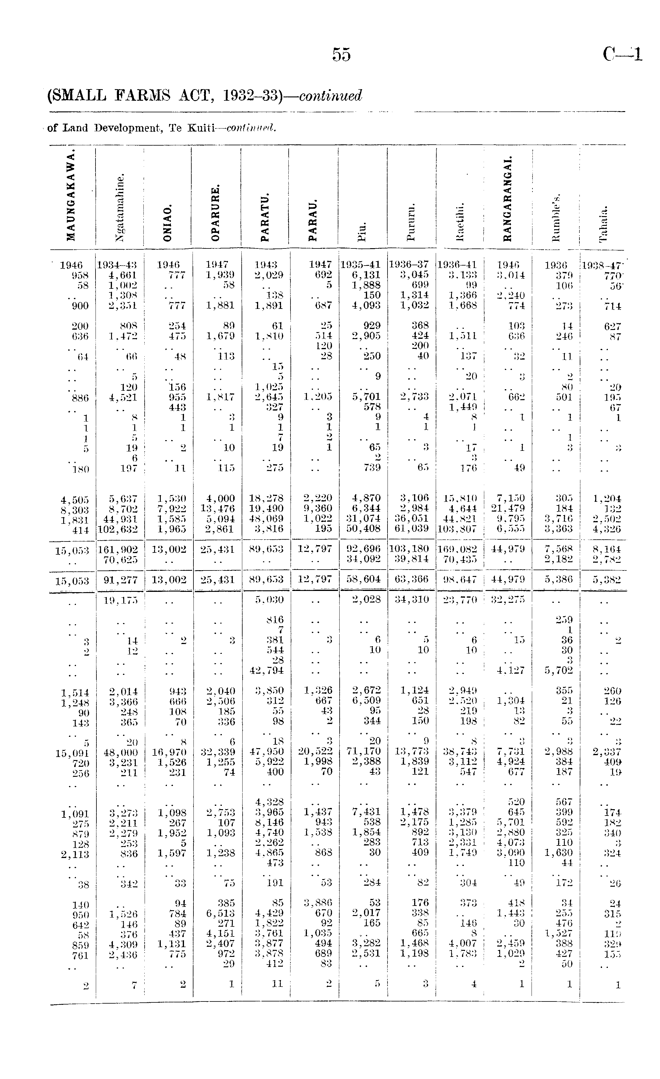 of Land Development, Te Kuiti —continued. < & < X < a X p < S3 § s 1 J) * O < X 0 w PS P OS < 04 0 S> H < « < ft. K> < PS < ft. P S P r-M 3 £ 3 i 1 1 < ca X < K < a X < « jt> s "3 ' 1946 958 58 *900 1934-43 4,661 1,002 1,308 2,351 1946 777 '777 1947 1,939 58 1^881 1943 2,029 'i38 1,891 1947 692 5 '687 1935-41 6,131 1,888 150 4,093 1936-37 3,045 699 1,314 1,032 1936-41 3,133 99 1,366 1,668 1946 3,014 774 1936 379 106 273 1938-47" 770' 56" '7i4 200 636 "64 808 1,472 66 254 475 '*48 89 1,679 113 61 1,810 ' 15 5 1,025 2,645 327 9 1 7 19 25 514 120 28 929 2,905 250 368 424 200 40 ljsn i37 103 636 14 246 ''ll 627 87 "886 1 1 1 5 5 120 4,521 8 1 19 i56 955 443 1 1 2 1 j 817 3 1 ' 10 1,205 " 3 1 2 1 9 5,' 701 578 9 1 "65 O 2,'733 4 1 3 "20 2.071 1,449 8 1 ' 17 Q '662 1 1 80 501 1 1 3 "20 195 67 1 3 *180 197 "ll 115 '275 739 "65 O 176 "49 4,505 8,303 1,831 414 5,637 8,702 44,931 102,632 1,530 7,922 1,585 1,965 4,000 13,476 5,094 2,861 18,278 19,490 48,069 3,816 2,220 9,360 1,022 195 4,870 6,344 31,074 50,408 3,106 2,984 36,051 61,039 15,810 4,644 44.821 103;807 7,150 21,479 9,795 6,555 305 184 3,716 3,363 1,204 132 2,502 4,326 15,053 161,902 70,625 13,002 25,431 89,653 12,797 92,696 34,092 103,180 39,814 169,082 70,435 44,979 7,568 2,182 8,164 2,782 15,053 91,277 13,002 25,431 89,653 12,797 58,604 63,366 98,647 44,979 5,386 5,382 19,175 5,030 2,028 34,310 23,770 32,275 3 2 ' 14 12 2 3 816 7 381 544 28 42,794 " 3 " 6 10 5 10 6 10 ' 15 4 * i27 259 1 36 30 3 5,702 " 2 1,514 1,248 90 143 2,014 3,366 248 365 943 666 108 70 2,040 2,506 185 336 3,850 312 55 98 1,326 667 43 2 2,672 6,509 95 344 1,124 651 28 150 2,949 2,520 219 198 13 82 355 21 3 55 260 126 22 15,091 720 256 "20 48,000 3,231 211 8 16,970 1,526 231 . 6 32,339 1,255 74 ' 18 47,950 5,922 400 " 3 20,522 1,998 70 "20 71,170 2,388 43 9 13,773 1,839 121 8 38,743 3,112 547 3 7,731 4,924 677 " 3 2,988 384 187 3 2,337 409 19 1 j091 275 879 128 2,113 3 j 273 2,211 2,279 253 836 1 j 098 267 1,952 5 1,597 2," 753 107 1,093 1,238 4,328 3,965 8,146 4,740 2,262 4,865 473 1 j 437 943 1,538 '868 7,' 431 538 1,854 283 30 1,'478 2,175 892 713 409 3,379 1,285 3,130 2,331 1,749 520 645 5,701 2,880 4.073 3 j090 110 567 399 592 325 110 1,630 44 'i74 182 340 3 324 "38 '342 "33 75 "i9i "53 '284 "82 304 "49 'i72 "26 140 950 642 58 859 761 146 376 4,309 2,436 94 784 89 437 1,131 775 385 6,513 271 4,151 2,407 972 29 85 4,429 1,822 3,761 3.877 3.878 412 3,886 670 92 1,035 494 689 83 53 2,017 165 2,531 176 338 85 665 1,468 1,198 373 i.46 8 4,007 1,783 418 1,443 30 2,' 459 !,029 34 255 476 1,527 388 427 50 24 315 2 11932!* 1552 7 2 1 11 2 5 3 4 I 1 1 1