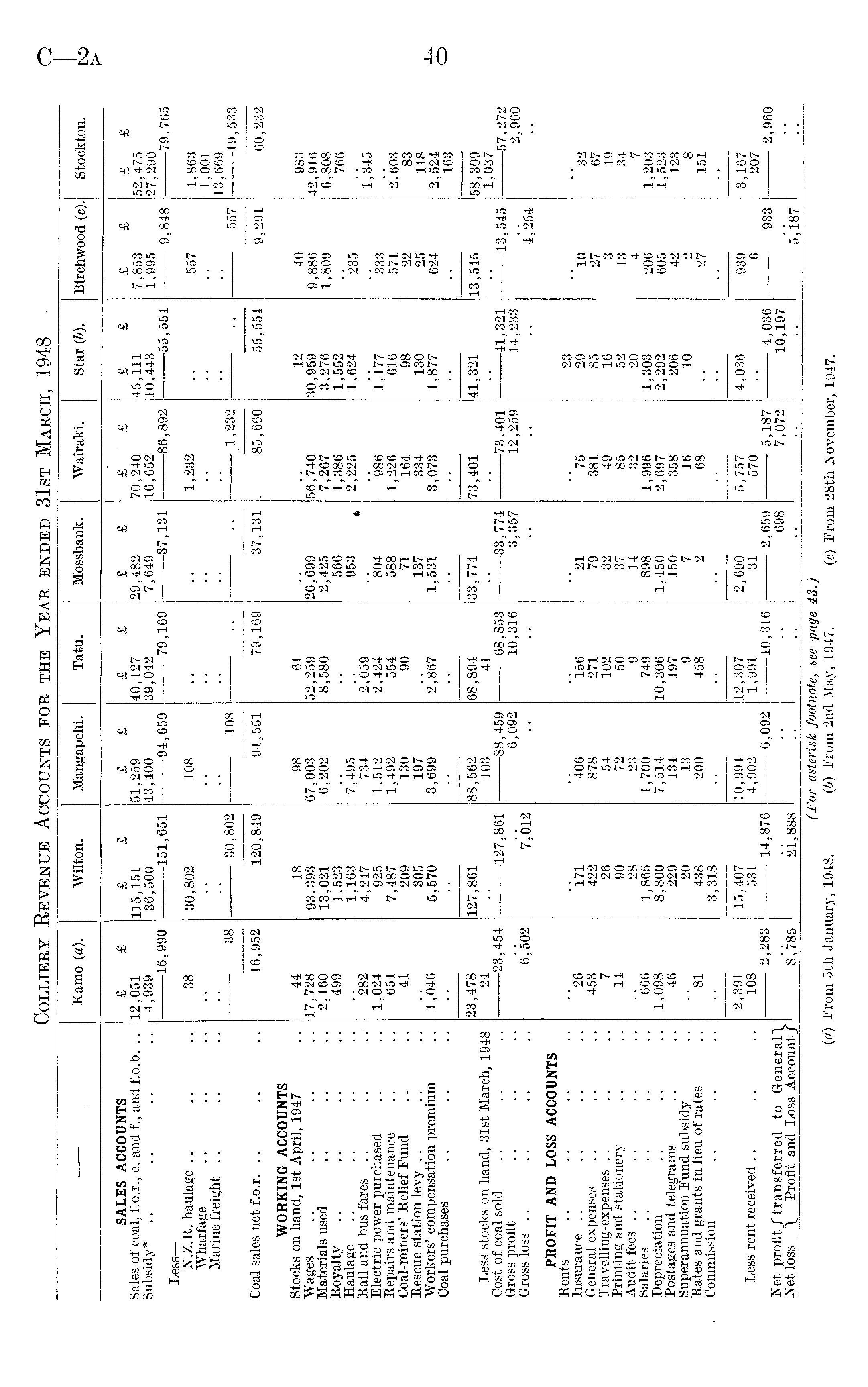Colliery Revenue Accounts for the Year ended 31st March, 1948