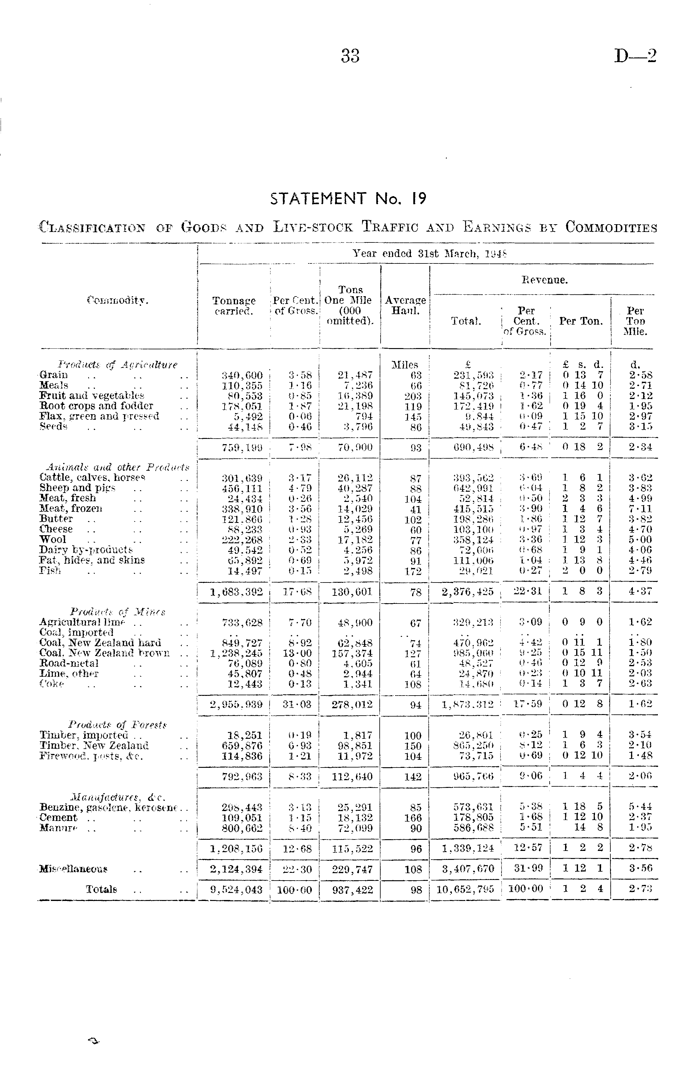 STATEMENT No. 19 Classification of Goods and Live-stock Traffic and Earnings by Commodities