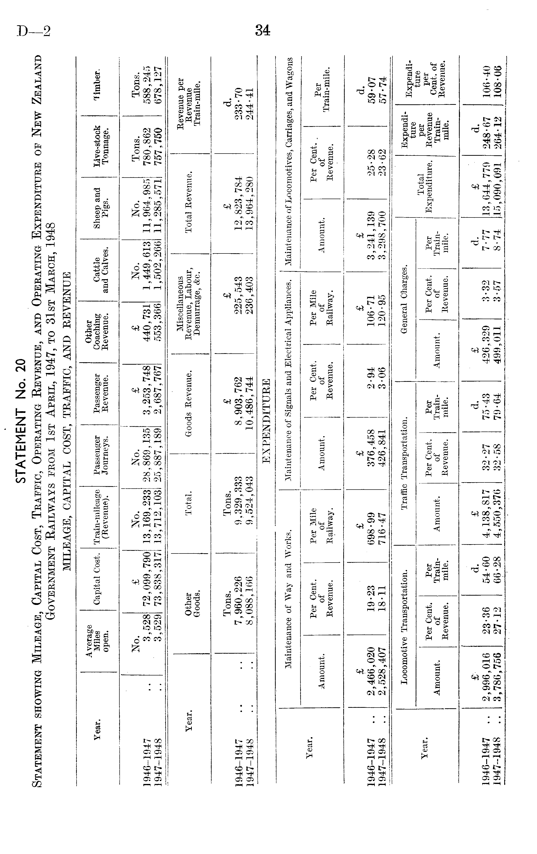 STATEMENT No. 20 Statement showing Mileage, Capital Cost, Traffic, Operating Revenue, and Operating Expenditure of New Zealand Government Railways from 1st April, 1947, to 31st March, 1948 MILEAGE, CAPITAL COST, TRAFFIC, AND REVENUE