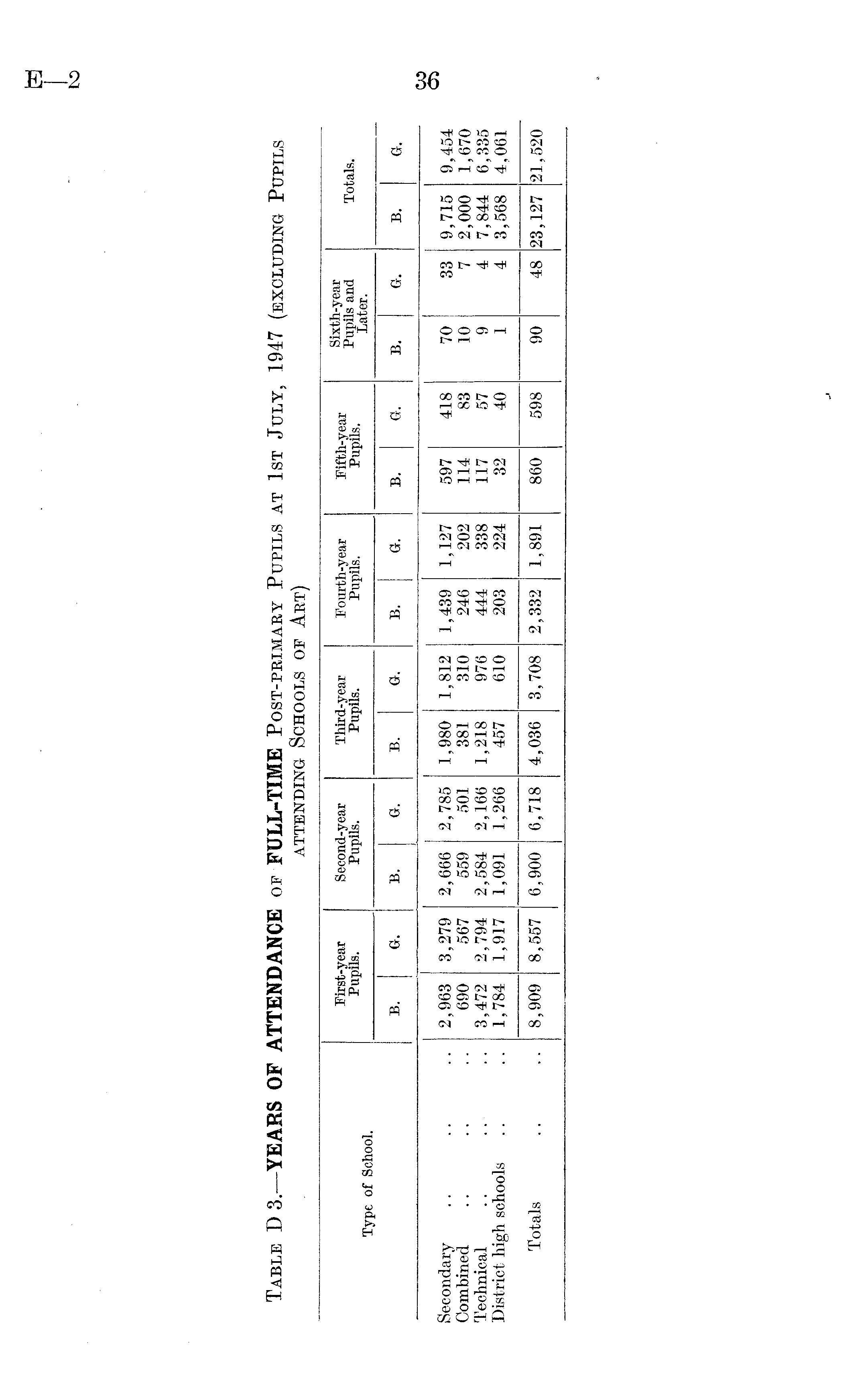 Table D3.—YEARS OF ATTENDANCE of FULL-TIME Post-primary Pupils at 1st July, 1947 (excluding Pupils attending Schools of Art)