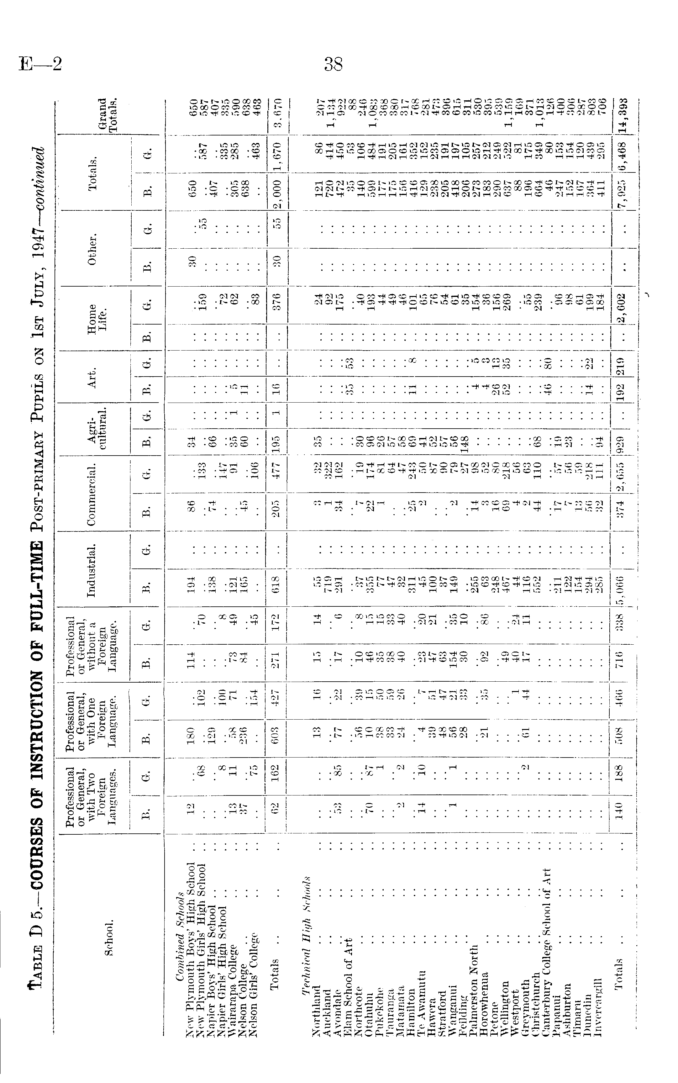 Table D5.—COURSES OF INSTRUCTION OF FULL-TIME Post-primary Pupils on 1st July, 1947—continued