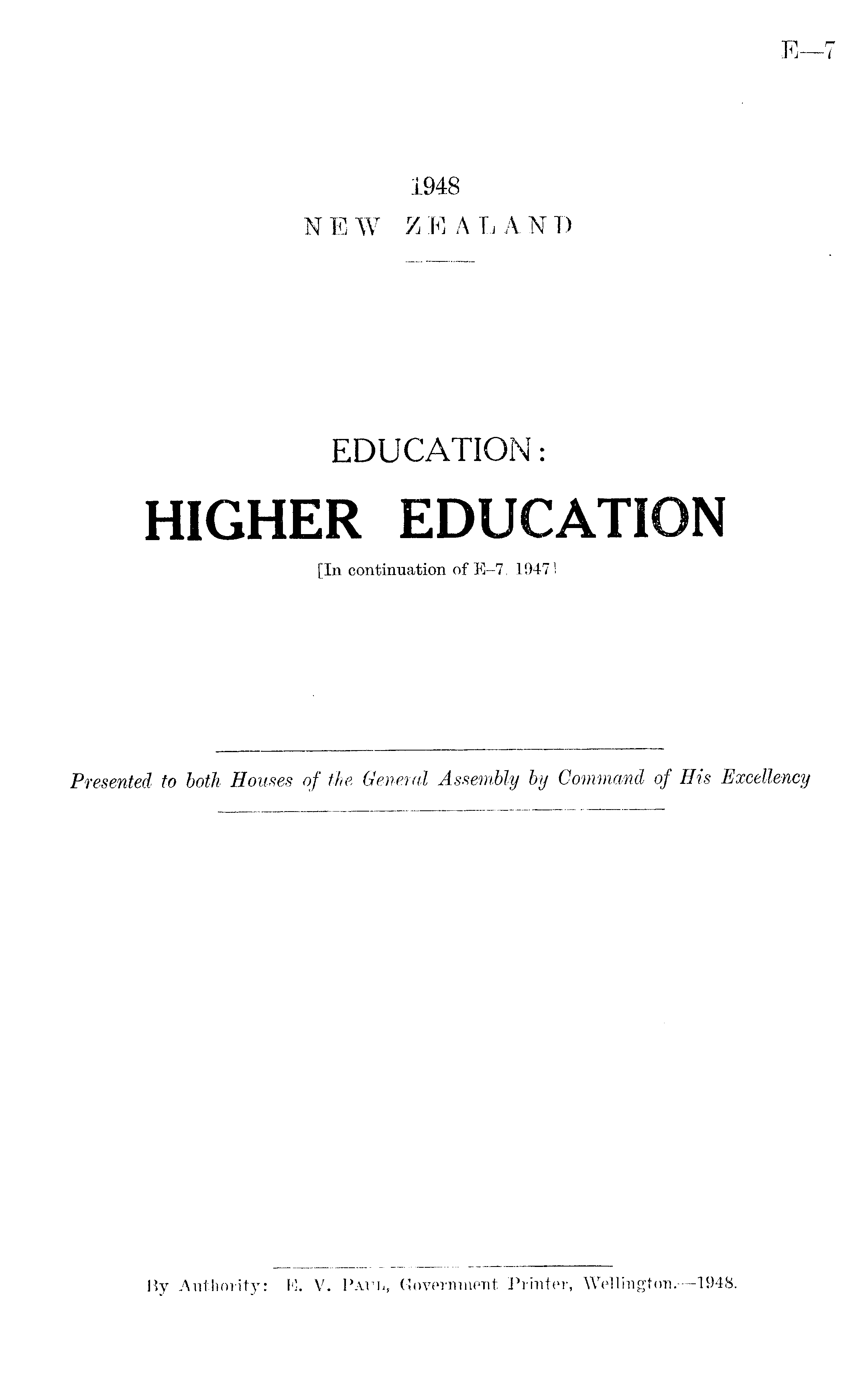 EDUCATION: HIGHER EDUCATION [In continuation of E-7 1947]