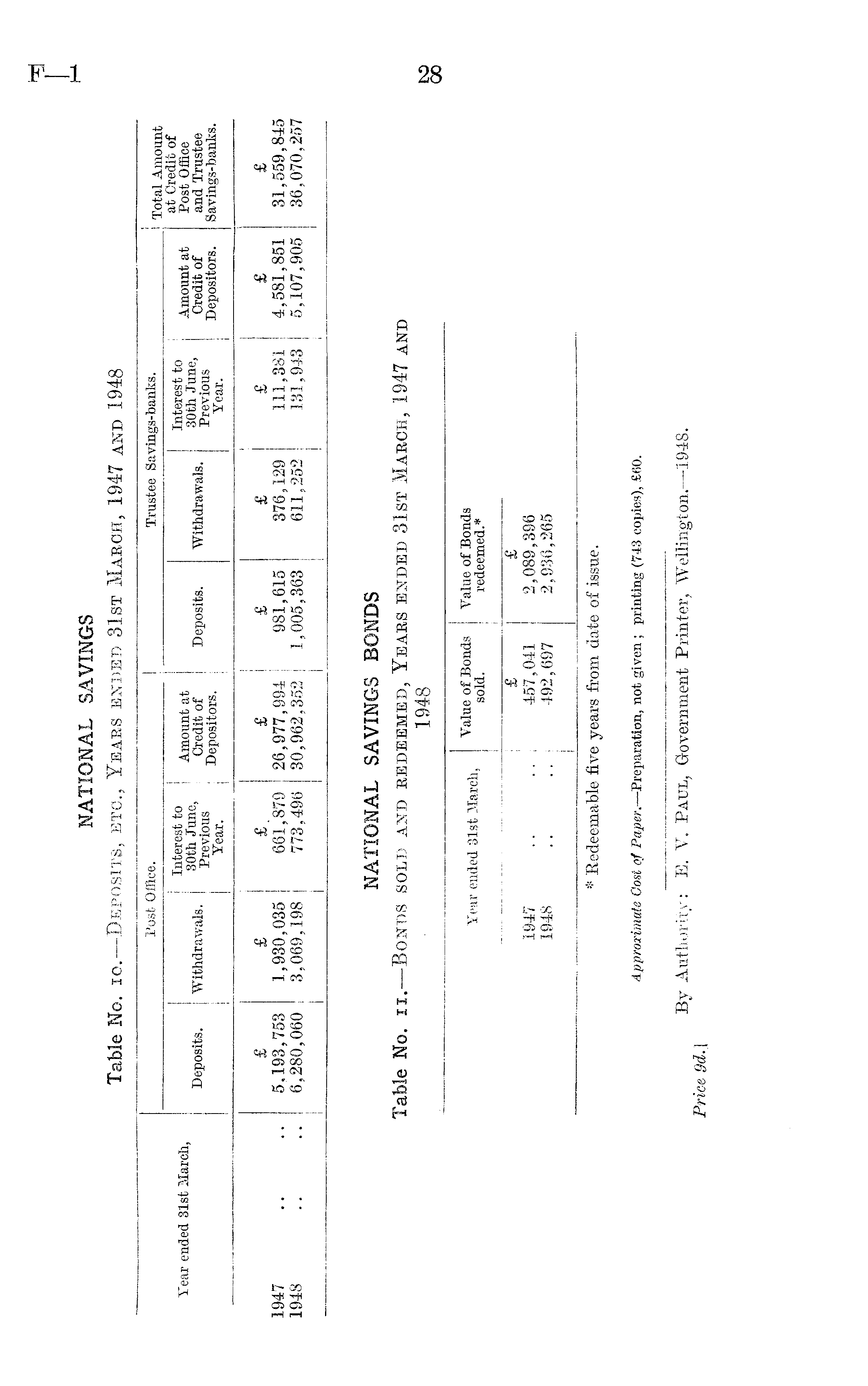 NATIONAL SAVINGS Table No. 10.—Deposits, etc., Years ended 31st March, 1947 and 1948