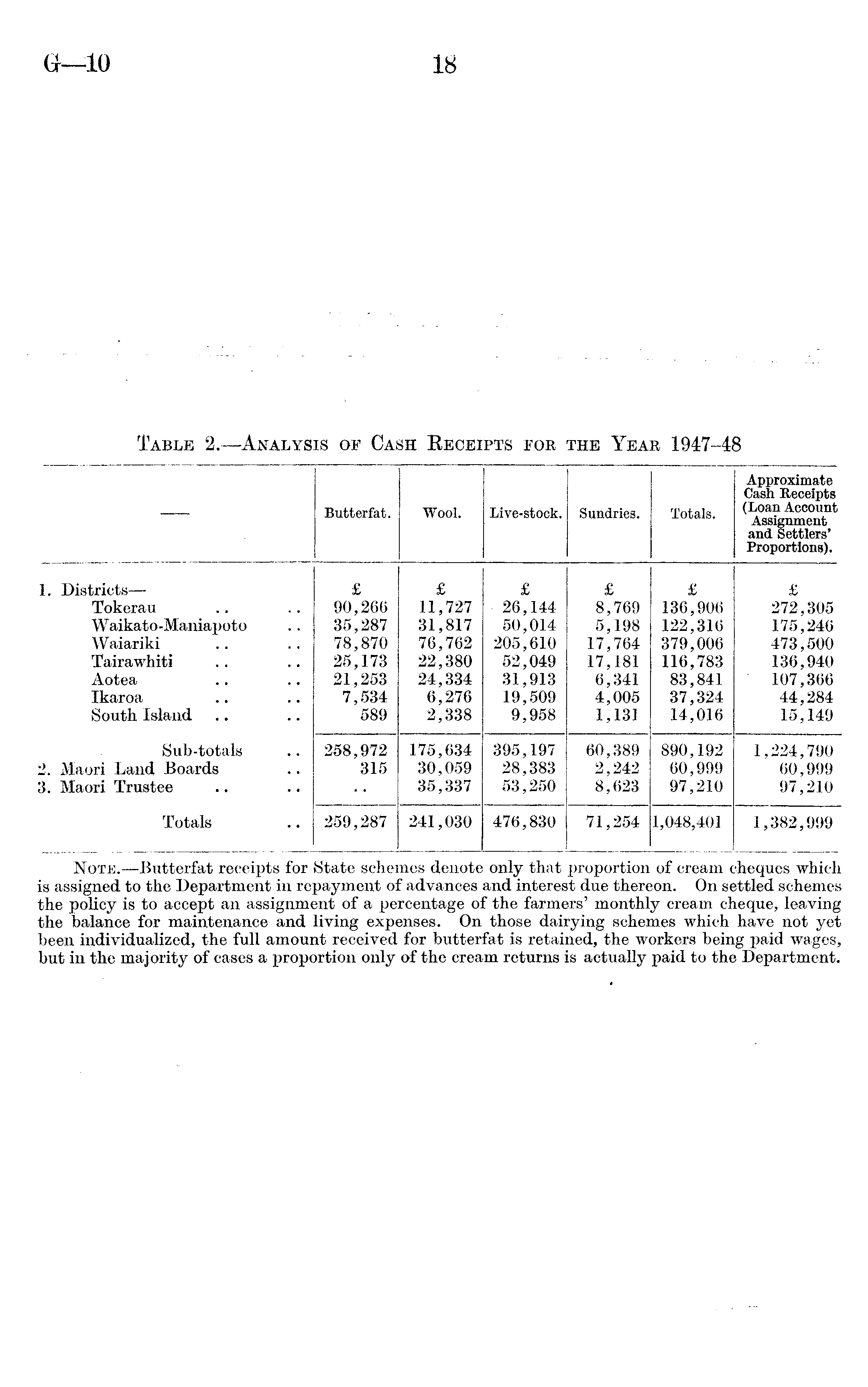 Table 2.—Analysis of Cash Receipts for the Year 1947-48