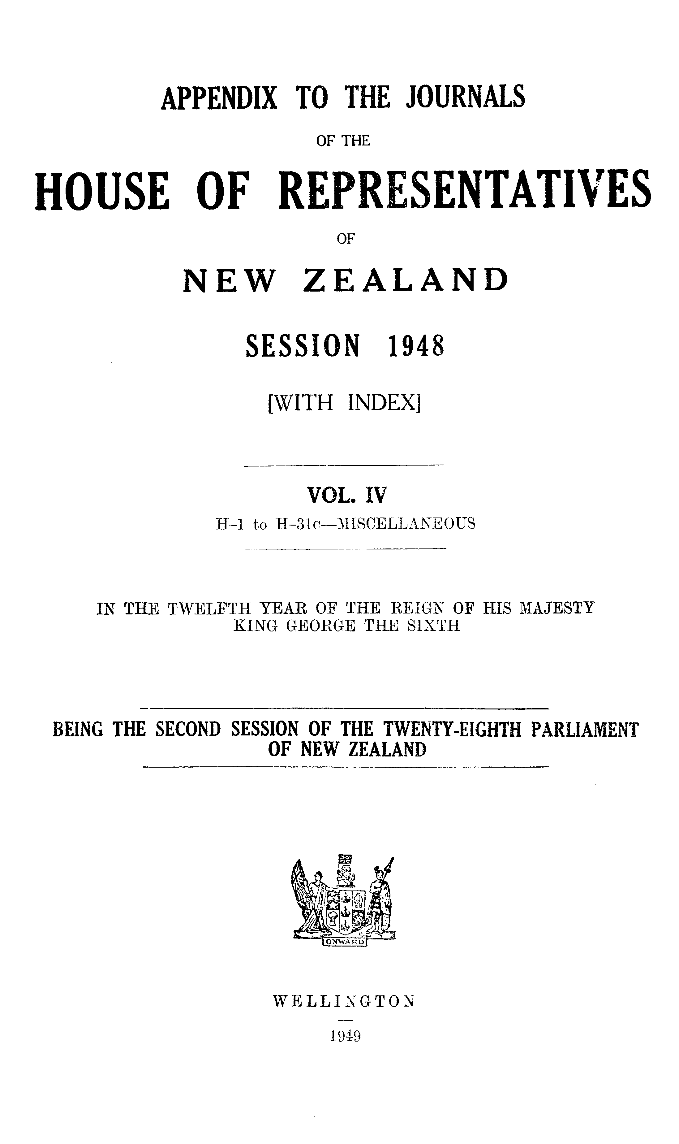 APPENDIX TO THE JOURNALS OF THE HOUSE OF REPRESENTATIVES OF NEW ZEALAND SESSION 1948 [WITH INDEX]