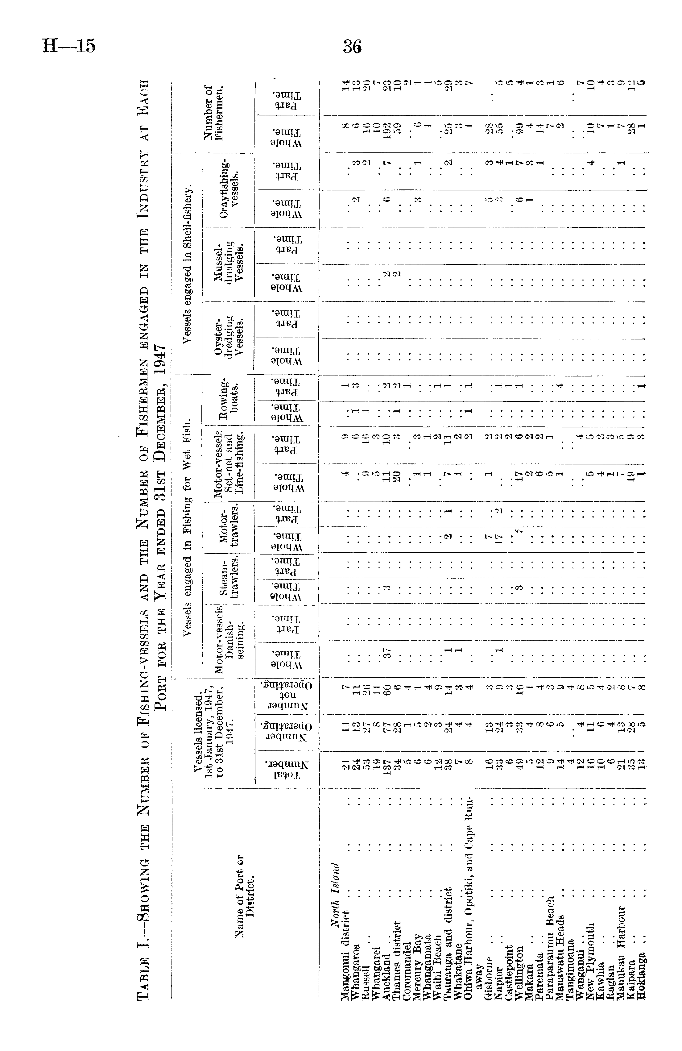 Table I.—Showing the Number of Fishing-vessels and the Number of Fishermen engaged in the Industry at Each Port for the Year ended 31st December, 1947