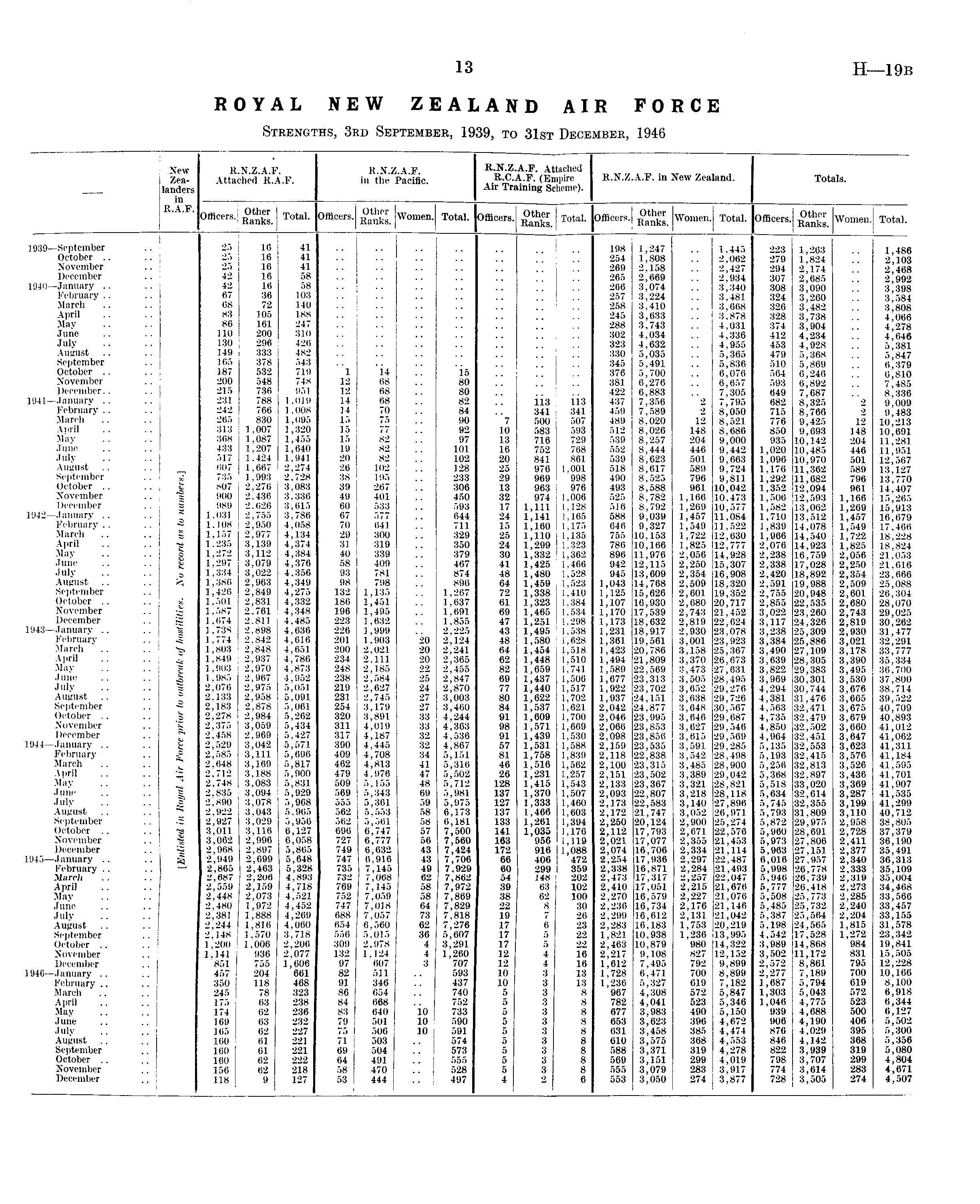 ROYAL NEW ZEALAND AIR FORCE Strengths, 3rd September, 1939, to 31st December, 1946