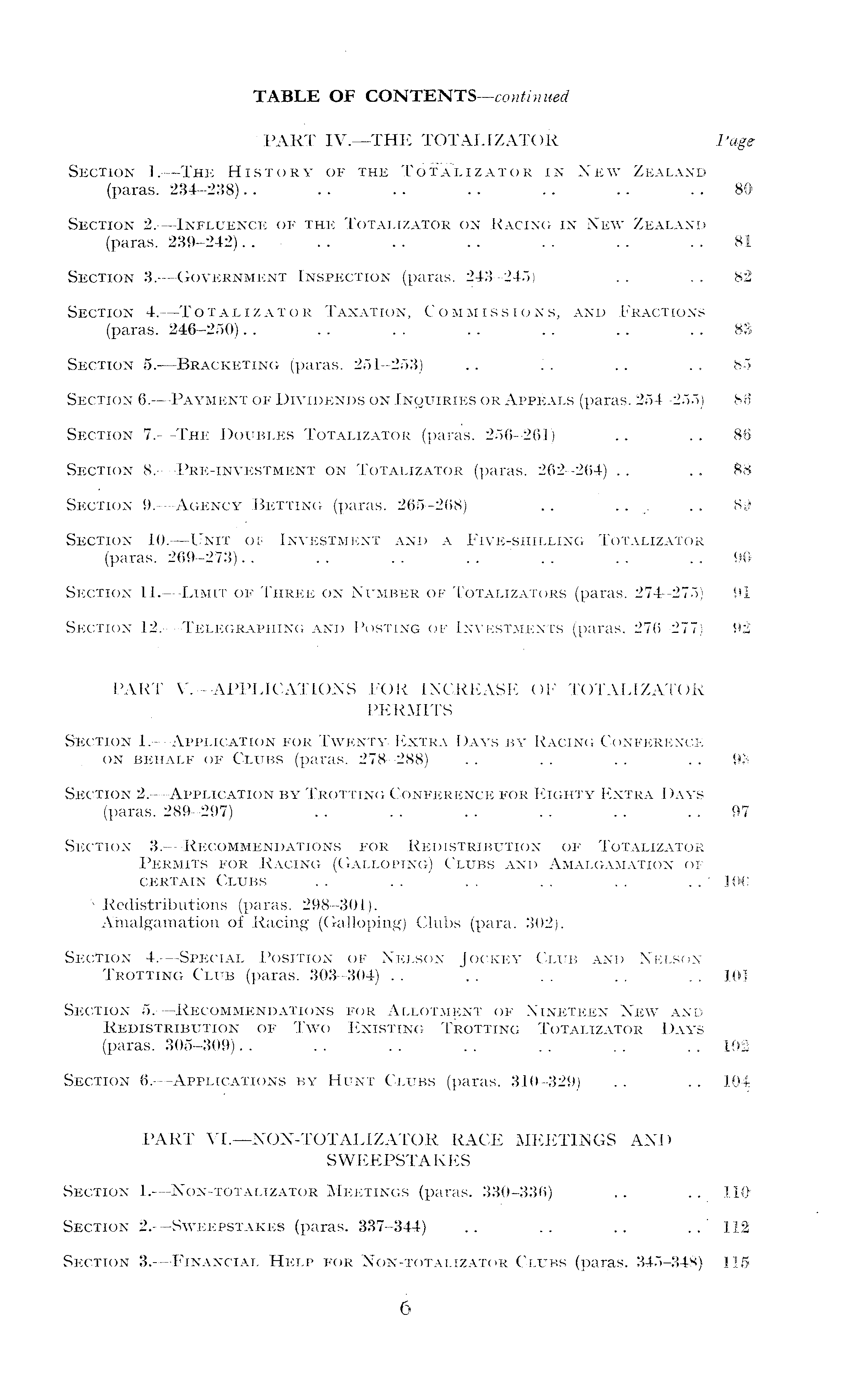 TABLE OF CONTENTS—continued PART IV.—THE TOTALIZATOR Page Section I.—The History of the Totalizator in New Zealand (paras. 234-238).. .. .. .. .. .. ..80 Section 2.—lnfluence of the Totalizator on Racing in New Zealand (paras. 239-242). . .. .. .. .. .. .. 81 Section 3.—Government Inspection (pax;as. 243-245) .. .. 82 Section 4.—Totalizator Taxation, Commissions, and Fractions (paras. 246-250).. ..... .. .. .. ..83 Sections. —Bracketing (paras. 251-253) .. .. 85 Section 6.—-Payment of Dividends on Inquiries or Appeals (paras. 254-255) 86 Section 7.—The Doubles Totalizator (paras. 256-261) .. ! . 86 Section B.—Pre-investment on Totalizator (paras. 262-264) .. .. 88 Section 9.—Agency Betting (paras. 265-268) .. •• - • 89 Section 10.—Unit op Investment and a Five-shilling Totalizator (paras. 269-273). . . . . . .... . . 90 Section 11.—Limit of Three on Number of Totalizators (paras. 274-275) 91' Section 12.—Telegraphing and Posting of Investments (paras. 276-277) 92 PART V.—APPLICATIONS FOR INCREASE OF TOTALIZATOR PERMITS Section 1 .—Application for Twenty- Extra Days by Racing Conference on behalf of Clubs (paras. 278-288) . . . . .. 93 Section 2.—Application by Trotting Conference for Eighty Extra Days (paras. 289-297) . . . . . . .. . . 97 Section 3.—Recommendations for Redistribution of Totalizator Permits for Racing (Galloping) Clubs and Amalgamation of certain Clubs . . . . . . . . .. . . ' 100 v Redistributions (paras. 298-301). Arrialgamation of Racing (Galloping) Clubs (para. 302). Section 4.—Special Position of Nelson Jockey Club and Nelson Trotting Club (paras. 303-304) .. .. .. .. .. 101 Section 5. —Recommendations for Allotment of Nineteen New and Redistribution of Two Existing Trotting Totalizator Days (paras. 305-309).. .. .. .. .. .. .. 102 Section 6.—Applications by Hunt Clubs (paras. 310-329) .. .. 104 PART VI.—NON-TOTALIZATOR RACE MEETINGS AND SWEEPSTAKES Section I.—Non-totalizator Meetings (paras. 330-336) .. .. 110 Section 2.—Sweepstakes' (paras. 337-344) .. .. .. .. 112 Section 3.—Financial Help for Non-totalizator Clubs (paras. 345-348) 115