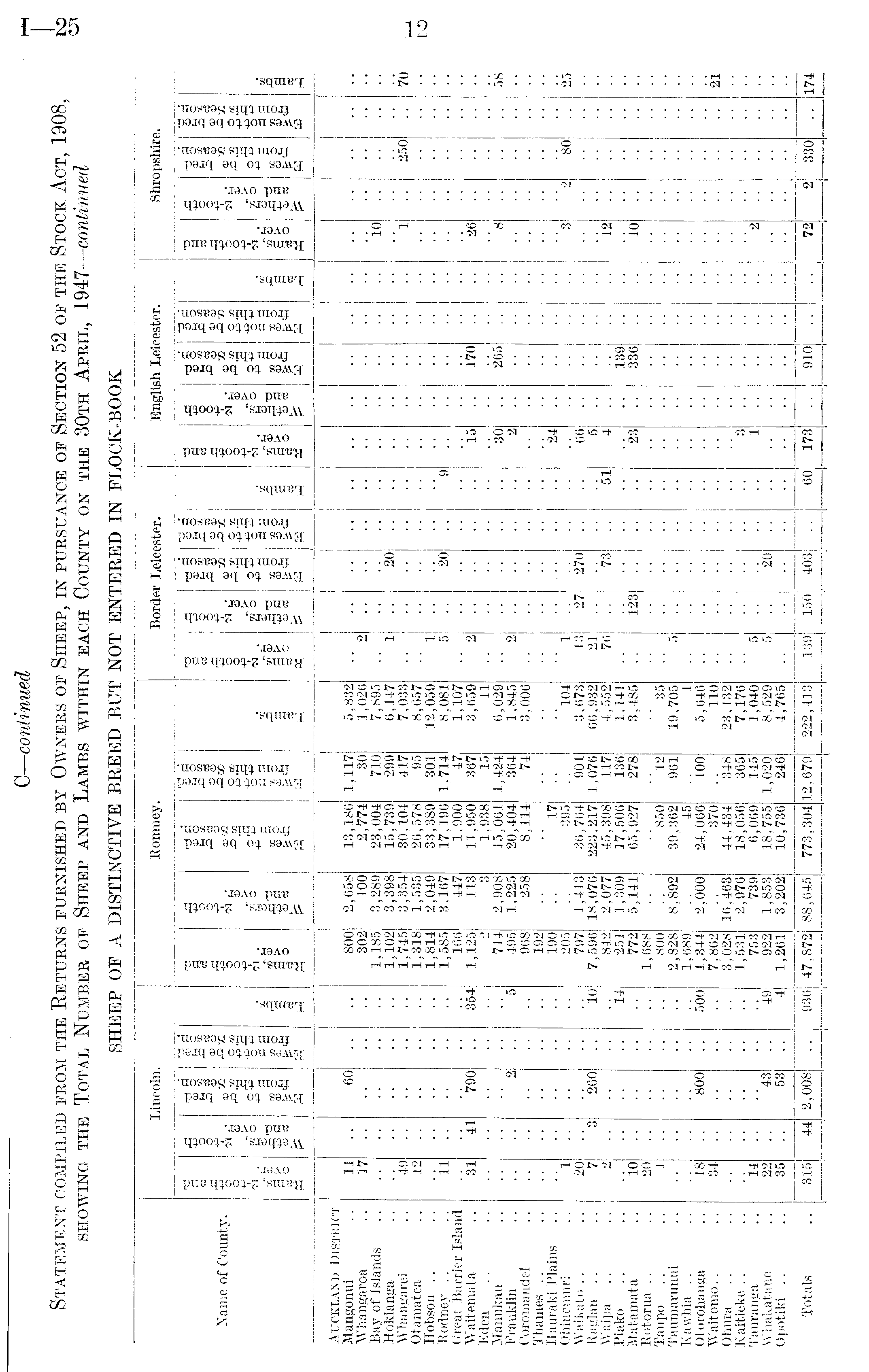 C— continued Statement compiled from the Returns furnished by Owners of Sheep, in pursuance of Section 52 of the Stock Act, 1908, showing the Total Number of Sheep and Lambs within each County on the 30th April, 1947— continued SHEEP OF A DISTINCTIVE BREED BUT NOT ENTERED IN FLOCK-BOOK