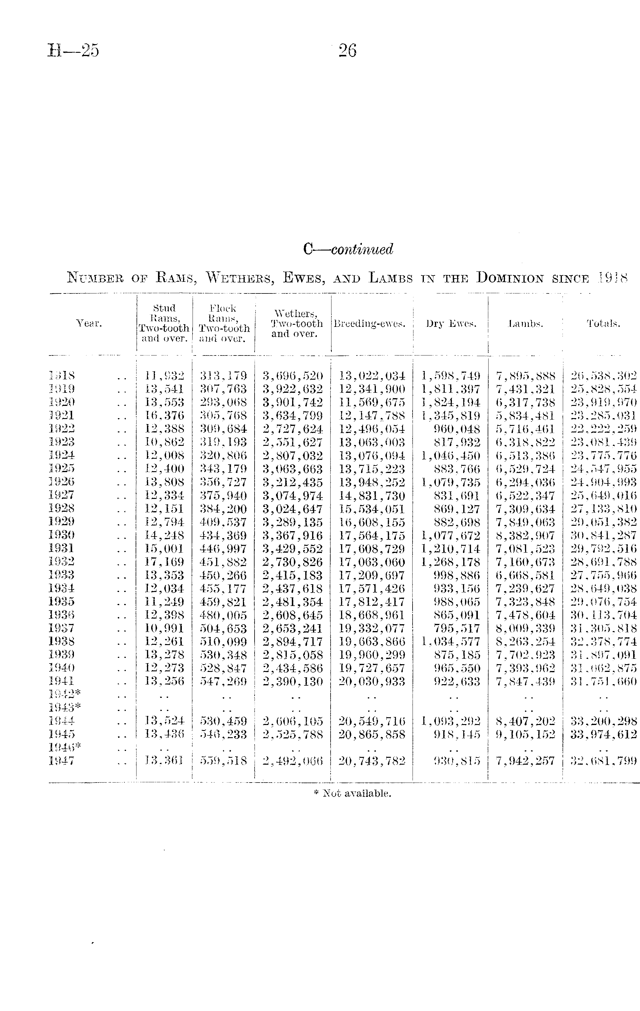 C —continued Number of Rams, Wethers, Ewes, and Lambs in the Dominion since 1918