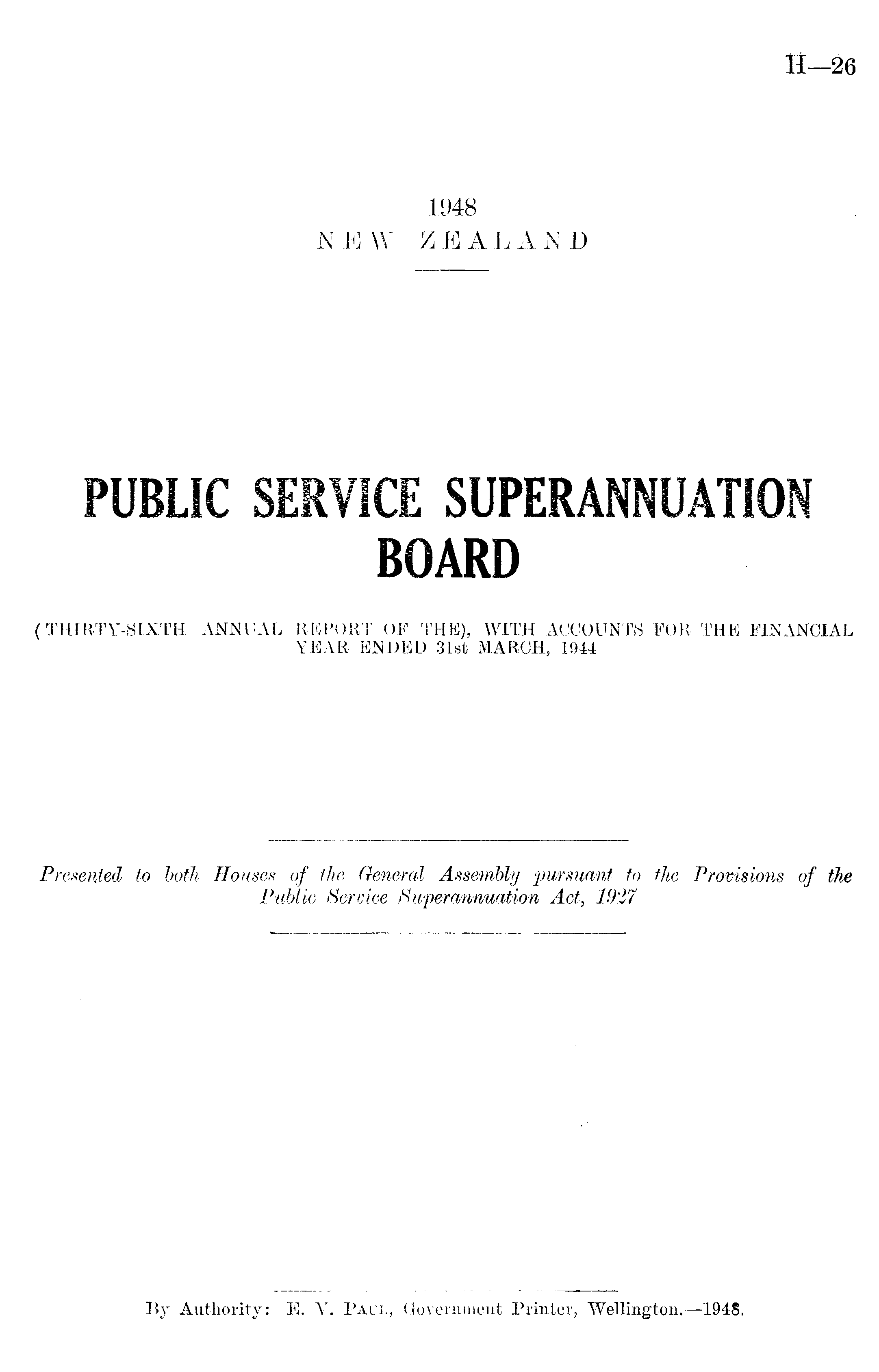 PUBLIC SERVICE SUPERANNUATION BOARD (THIRTY-SIXTH ANNUAL REPORT OF THE), WITH ACCOUNTS FOR THE FINANCIAL YEAR ENDED 31st MARCH, 1944