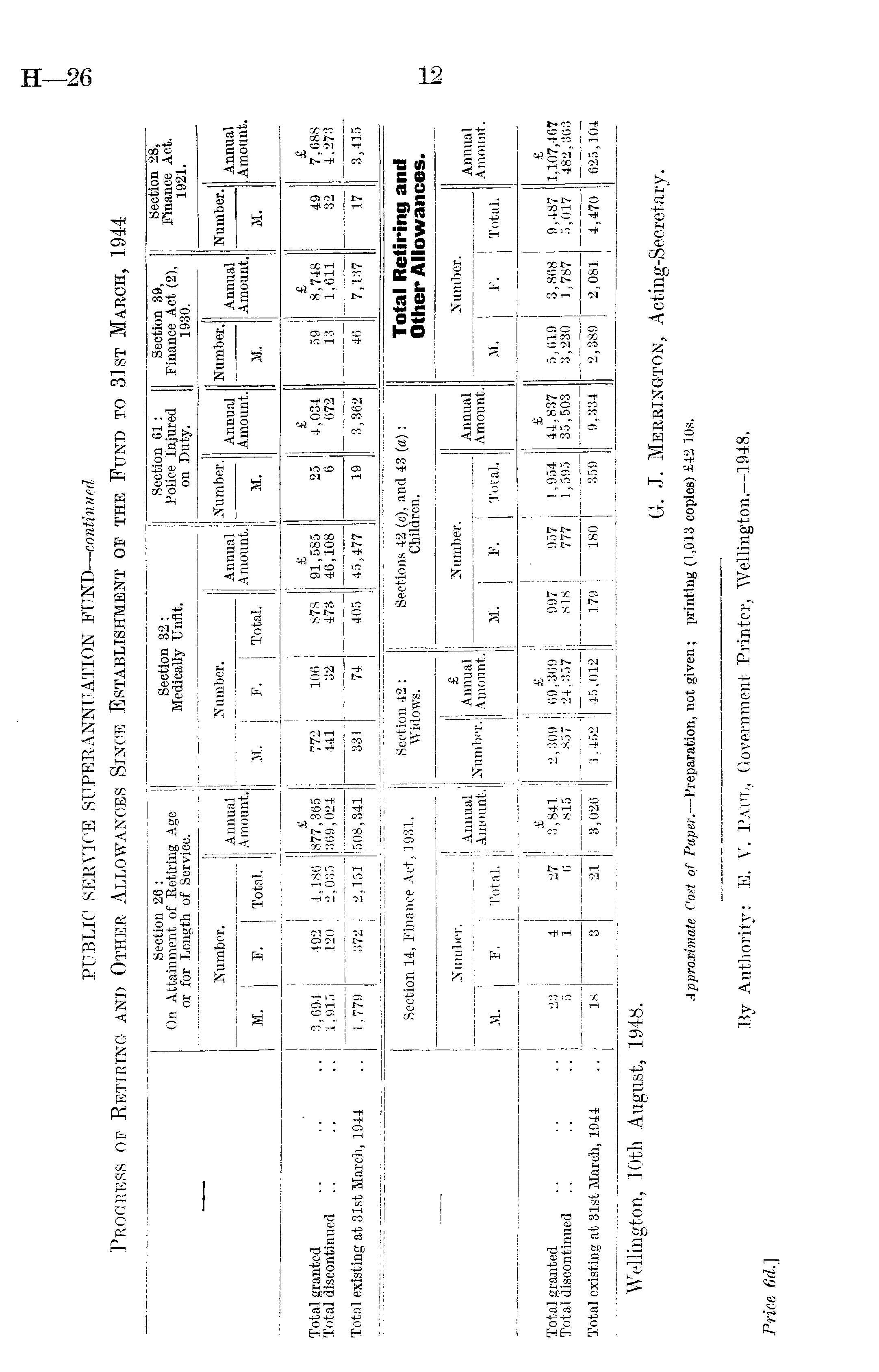 Wellington, 10th August, 1948. G. J. Merrington, Acting-Secretary. Approximate Cost of Paper.—Preparation, not given; printing (1,013 copies) £42 10s.