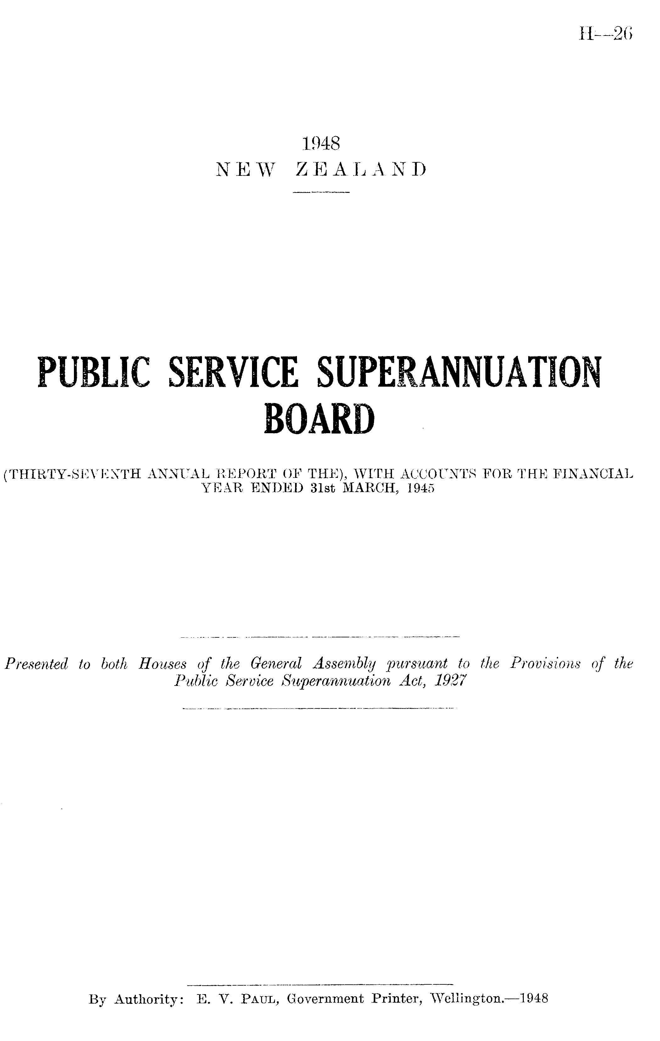 PUBLIC SERVICE SUPERANNUATION BOARD (THIRTY-SEVENTH ANNUAL REPORT OF THE), WITH ACCOUNTS FOR THE FINANCIAL YEAR ENDED 31st MARCH, 1945