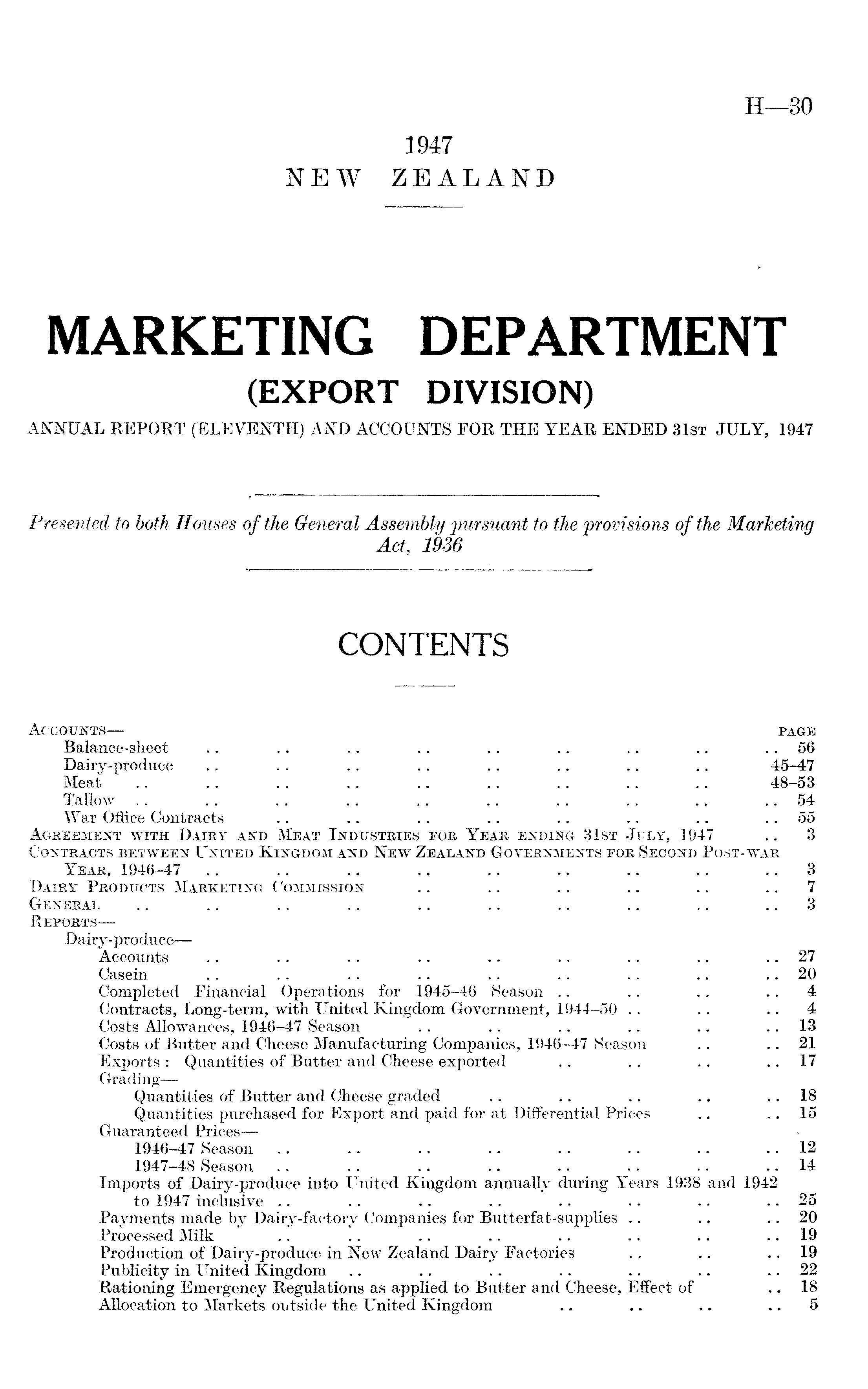 MARKETING DEPARTMENT (EXPORT DIVISION) ANNUAL REPORT (ELEVENTH) AND ACCOUNTS FOR THE YEAR ENDED 31st JULY, 1947