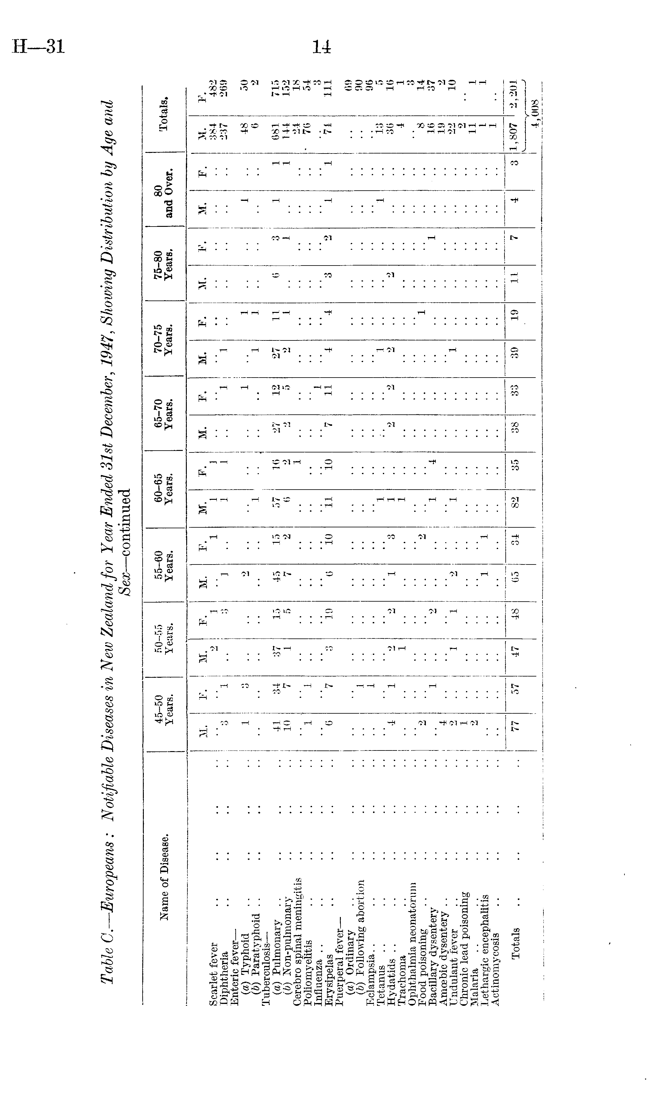 Table C.-Europeans: Notifiable Diseases in New Zealand for Year Ended 31st December, 1947, Showing Distribution by Age and Sex— continued