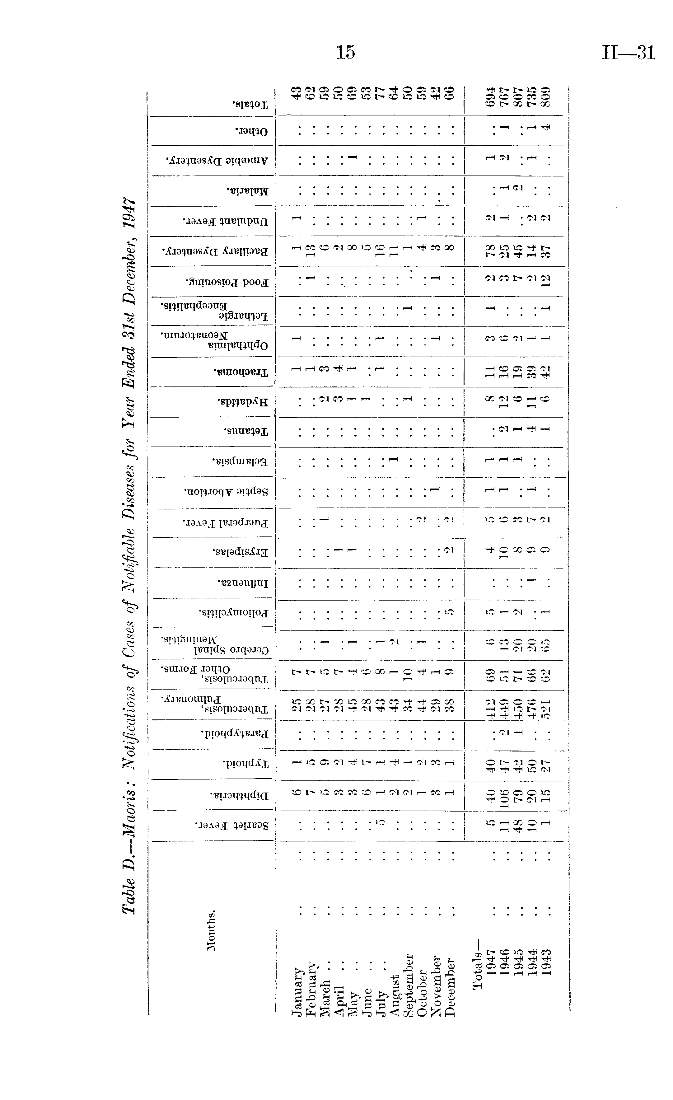 Table D.—Maoris: Notifications of Cases of Notifiable Diseases for Year Ended 31st December, 1947