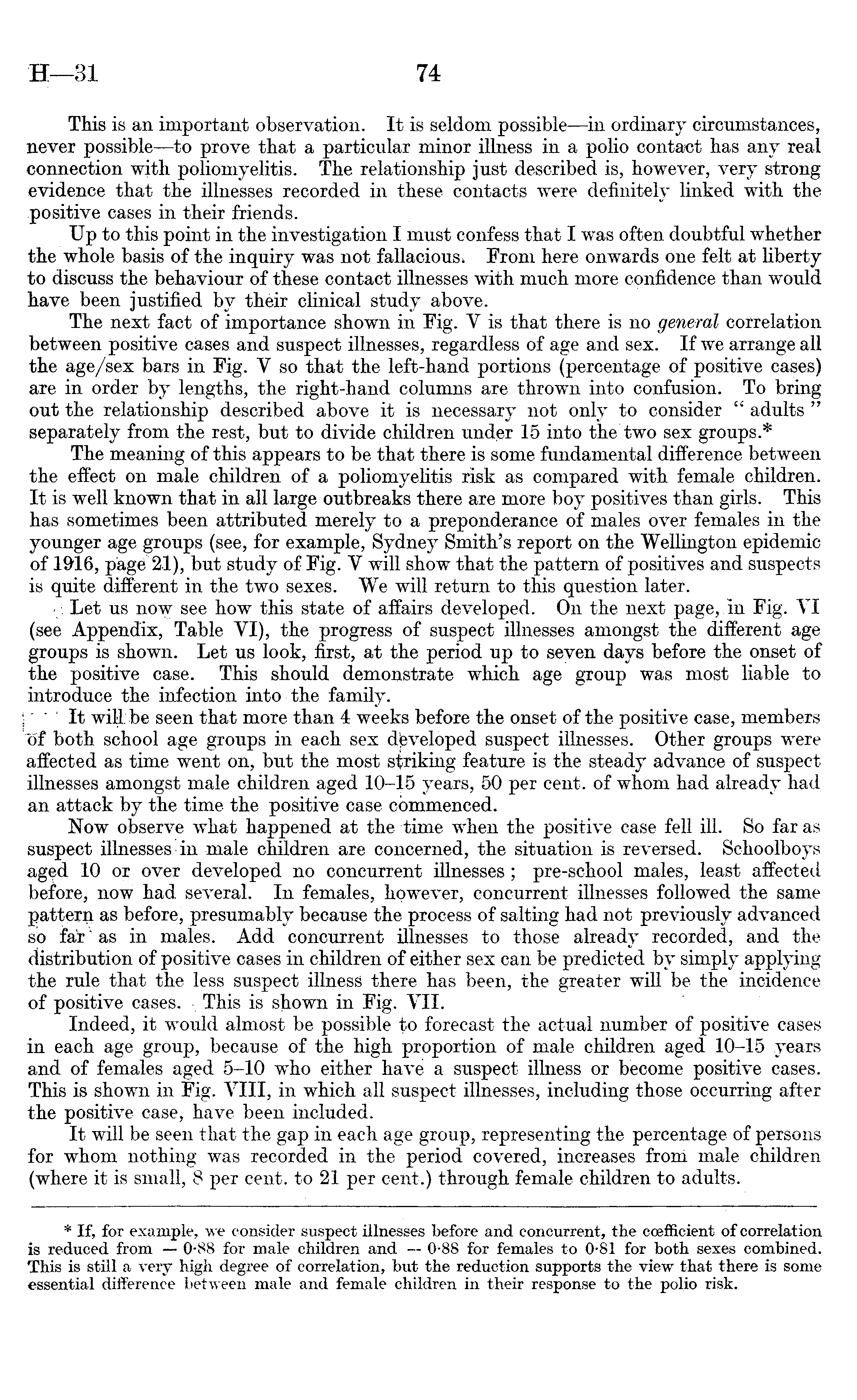 * If, for example, we consider suspect illnesses before and concurrent, the coefficient of correlation is reduced from 0-88 for male children and 0-88 for females to 0-81 for both sexes combined. This is still a very high degree of correlation, but the reduction supports the view that there is some essential difference between male and female children in their response to the polio risk.